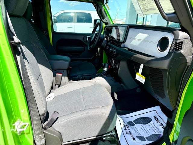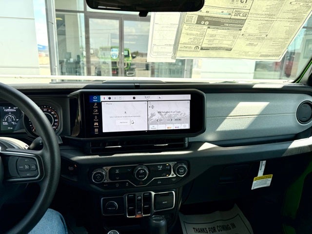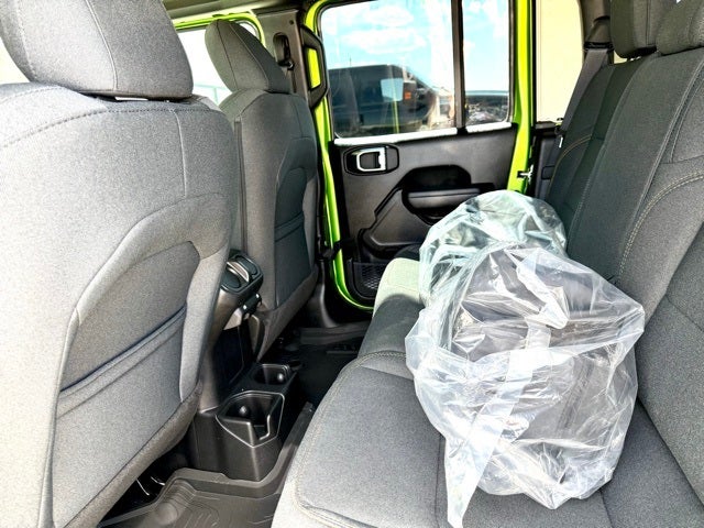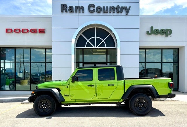 This 2025 Jeep Gladiator Sport in Mojito comes with the following features: 3.6L V6 24V VVT 8-Speed Automatic 4WD Quick Order Package 24B Sport, Trailer Tow & Aux Switch Group (Auxiliary Switches, Class IV Receiver Hitch, Heavy-Duty Engine Cooling, and Trailer Hitch Zoom), 110 MPH Vehicle Max Speed Calibration, 12.3 Touchscreen Display, 3.73 Rear Axle Ratio, 4-Wheel Disc Brakes, 4G LTE Wi-Fi Hot Spot, 8 Speakers, ABS brakes, Air Conditioning, Alexa Built-In, AM/FM radio: SiriusXM, Apple CarPlay, Apple CarPlay/Android Auto, Black 3-Piece Hard Top, Brake assist, Cloth Low-Back Bucket Seats, Compass, Connectivity - US/Canada, Delay-off headlights, Driver door bin, Driver vanity mirror, Dual front impact airbags, Dual front side impact airbags, Electronic Stability Control, Front anti-roll bar, Front Bucket Seats, Front Center Armrest w/Storage, Front fog lights, Front License Plate Bracket, Front reading lights, Google Android Auto, Illuminated entry, Integrated roll-over protection, Low tire pressure warning, Manufacturer's Statement of Origin, MOPAR All-Weather Slush Mats, MOPAR Spray In Bedliner, Normal Duty Suspension, Occupant sensing airbag, Outside temperature display, Overhead airbag, Panic alarm, ParkView Rear Back-Up Camera, Passenger door bin, Passenger vanity mirror, Power steering, Power windows, Radio data system, Radio: Uconnect 5 w/12.3 Display, Rear anti-roll bar, Rear reading lights, Remote keyless entry, Speed control, Split folding rear seat, Steering wheel mounted audio controls, Tachometer, Telescoping steering wheel, Tilt steering wheel, Traction control, Trip computer, USB Host Flip, Variably intermittent wipers, Voltmeter, and Wheels: 17 x 7.5 Black Steel Styled.