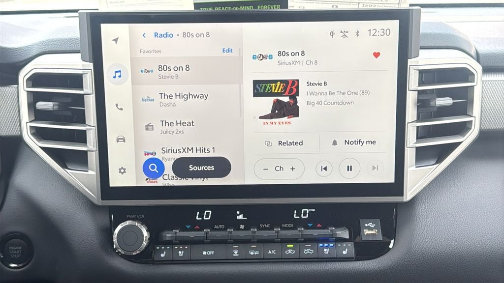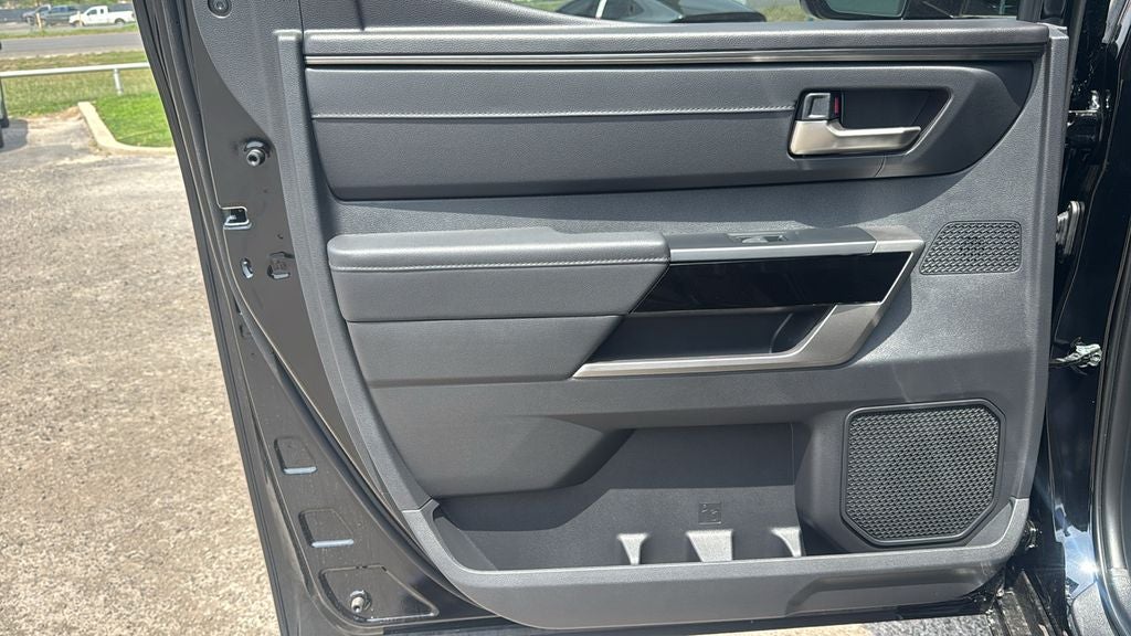 This 2025 Toyota Tundra Limited in Midnight Black Metallic comes with the following features: 3.4L V6 10-Speed Automatic 4WD Panoramic View Monitor Package (Panoramic View Back Monitor), Power Package (120V Deck & Cabin Power Supply and Wireless Charger), Premium Package (High Grade Full LED Headlamp), Towing Package, 4WD, Black Artificial Leather, 20 Alloy Wheels, 3.31 Axle Ratio, 4-Wheel Disc Brakes, 8-Way Pwr Adjustable Heated/Ventilated Front Seats, 9 Speakers, ABS brakes, Air Conditioning, Alloy wheels, AM/FM radio: SiriusXM, Apple CarPlay/Android Auto, Auto High-beam Headlights, Auto-dimming door mirrors, Auto-dimming Rear-View mirror, Automatic temperature control, Blind Spot Monitor, Brake assist, Bumpers: body-color, Carpet Floor Mats (TMS), Delay-off headlights, Driver door bin, Driver vanity mirror, Dual front impact airbags, Dual front side impact airbags, Electronic Stability Control, Emergency communication system: Safety Connect (10-year trial), Exterior Parking Camera Rear, Folding Color-Keyed Outside Mirrors, Front anti-roll bar, Front Bucket Seats, Front Center Armrest, Front dual zone A/C, Front fog lights, Front reading lights, Front wheel independent suspension, Fully automatic headlights, Garage door transmitter: HomeLink, Heated door mirrors, Heated front seats, Heated Leather Steering Wheel, Illuminated entry, JBL Premium Audio, Knee airbag, Leather Shift Knob, Leather steering wheel, Low tire pressure warning, Memory seat, Multi-Terrain Back Monitor, Navigation System, Occupant sensing airbag, Outside temperature display, Overhead airbag, Overhead console, Panic alarm, Passenger door bin, Passenger vanity mirror, Power door mirrors, Power driver seat, Power passenger seat, Power steering, Power Tilt/Slide Panoramic Sunroof, Power windows, Radio data system, Radio: Audio Multimedia System, Rear reading lights, Rear seat center armrest, Rear step bumper, Rear window defroster, Remote keyless entry, Safety Connect, Security system, SofTex Seat Trim, Speed control, Speed-sensing steering, Split folding rear seat, Steering wheel mounted audio controls, Tachometer, Telescoping steering wheel, Tilt steering wheel, Traction control, Trip computer, Turn signal indicator mirrors, Variably intermittent wipers, Ventilated front seats, and Voltmeter.