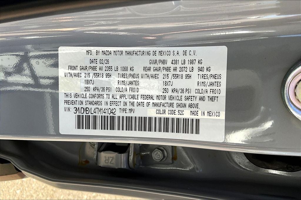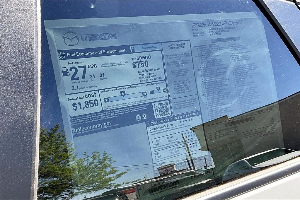 This 2026 Mazda CX-30 2.5 S Aire Edition in Aero Gray Metallic comes with the following features: SKYACTIV®-G 2.5L 4-Cylinder DOHC 16V 6-Speed Automatic AWD 4-Wheel Disc Brakes, 8 Speakers, ABS brakes, Aero Gray Paint Charge, Air Conditioning, Alloy wheels, AM/FM radio, AppLink/Apple CarPlay and Android Auto, Auto High-beam Headlights, Automatic temperature control, Black Lug Nuts & Black Wheel Locks, Brake assist, Bumpers: body-color, Cargo Tray, Compass, Delay-off headlights, Driver door bin, Driver vanity mirror, Dual front impact airbags, Dual front side impact airbags, Electronic Stability Control, Emergency communication system: MAZDA CONNECT, Exterior Parking Camera Rear, Front anti-roll bar, Front Bucket Seats, Front Center Armrest, Front dual zone A/C, Front reading lights, Front wheel independent suspension, Fully automatic headlights, Heated door mirrors, Heated Front Bucket Seats, Heated front seats, High Wall All-Weather Floor Mats, Illuminated entry, Knee airbag, Leather Shift Knob, Leather steering wheel, Leatherette Seat Trim w/Gray Cloth Inserts, Low tire pressure warning, MAZDA CONNECT Infotainment System, Memory seat, Occupant sensing airbag, Outside temperature display, Overhead airbag, Overhead console, Panic alarm, Passenger door bin, Passenger vanity mirror, Power door mirrors, Power driver seat, Power moonroof, Power steering, Power windows, Radio data system, Radio: AM/FM Audio System, Rain sensing wipers, Rear seat center armrest, Rear side impact airbag, Rear window defroster, Rear window wiper, Remote keyless entry, Speed control, Speed-sensing steering, Split folding rear seat, Spoiler, Steering wheel mounted audio controls, Tachometer, Telescoping steering wheel, Tilt steering wheel, Traction control, Trip computer, Turn signal indicator mirrors, Variably intermittent wipers, and Wheels: 18 x 7J Aluminum Alloy. Price includes: $2000 - Customer Cash. Exp. 04/30/2026