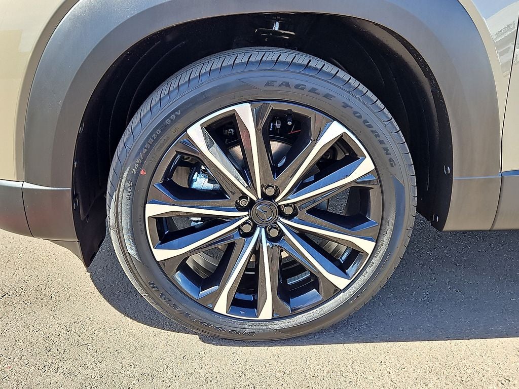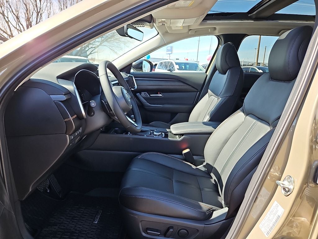 This 2026 Mazda CX-50 2.5 Turbo in Zircon Sand Metallic comes with the following features: 2.5L I4 Turbocharged DOHC 16V LEV3-ULEV70 227hp 6-Speed Automatic AWD Weather Package, 12 Speakers, 4-Wheel Disc Brakes, ABS brakes, Air Conditioning, Alloy wheels, AM/FM radio: SiriusXM, AppLink/Apple CarPlay and Android Auto, Auto High-beam Headlights, Auto-dimming Rear-View mirror, Automatic temperature control, Black Lug Nuts and Black Wheel Locks, Brake assist, Bumpers: body-color, Delay-off headlights, Driver door bin, Driver vanity mirror, Dual front impact airbags, Dual front side impact airbags, Electronic Stability Control, Emergency communication system: MAZDA CONNECT, Exterior Parking Camera Rear, Front anti-roll bar, Front Bucket Seats, Front Center Armrest, Front dual zone A/C, Front reading lights, Front wheel independent suspension, Fully automatic headlights, Garage door transmitter: HomeLink, Heads-Up Display, Heated and Ventilated Front Seats with 3 Level Adjustment, Heated door mirrors, Heated front seats, Illuminated entry, Knee airbag, Leather Seat Trim, Leather Shift Knob, Leather steering wheel, Low tire pressure warning, Memory seat, Occupant sensing airbag, Outside temperature display, Overhead airbag, Overhead console, Panic alarm, Passenger door bin, Passenger vanity mirror, Power door mirrors, Power driver seat, Power Liftgate, Power moonroof, Power passenger seat, Power steering, Power windows, Radio data system, Radio: AM/FM/HD Bose 12-Speaker Audio Sound System, Rain sensing wipers, Rear seat center armrest, Rear window defroster, Rear window wiper, Remote keyless entry, Speed control, Speed-sensing steering, Split folding rear seat, Spoiler, Steering wheel mounted audio controls, Tachometer, Telescoping steering wheel, Tilt steering wheel, Traction control, Trip computer, Turn signal indicator mirrors, Variably intermittent wipers, Ventilated front seats, Wheels: 20 x 8J Aluminum Alloy Black Metallic with Machining Cut, and Zircon Sand Metallic Paint Charge.