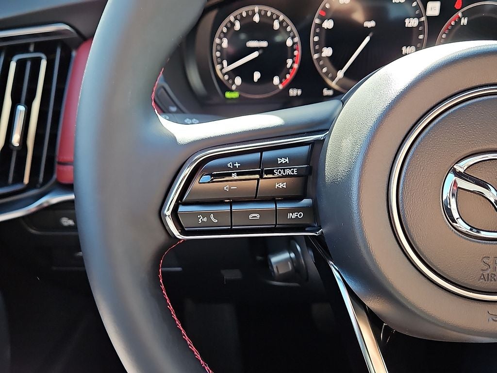 This 2026 Mazda CX-70 3.3 Turbo S Premium in Soul Red Crystal Metallic comes with the following features: 3.3L I6 Turbocharged 8-Speed Automatic AWD 12 Speakers, 4-Wheel Disc Brakes, ABS brakes, Air Conditioning, Alloy wheels, AM/FM radio: SiriusXM, Auto High-beam Headlights, Auto-dimming door mirrors, Auto-dimming Rear-View mirror, Automatic temperature control, Black Cross Bars, Black Lug Nuts and Black Wheel Locks, Brake assist, Bumpers: body-color, Cargo Blocks, Compass, Delay-off headlights, Driver door bin, Driver vanity mirror, Dual front impact airbags, Dual front side impact airbags, E911 Automatic Emergency Notification, Electronic Stability Control, Emergency communication system: MAZDA CONNECT, Four wheel independent suspension, Front anti-roll bar, Front Bucket Seats, Front Center Armrest w/Storage, Front dual zone A/C, Front reading lights, Fully automatic headlights, Garage door transmitter: HomeLink, Heads-Up Display, Heated door mirrors, Heated front seats, Heated rear seats, Heated steering wheel, Heated/Ventilated Front Bucket Seats, Illuminated entry, Infotainment System Voice Command, Knee airbag, Leather Shift Knob, Leather steering wheel, Low tire pressure warning, Mazda Connected Services, Mazda Online Navigation, Memory seat, Nappa Leather Seat Trim, Navigation system: MAZDA CONNECT, Occupant sensing airbag, Outside temperature display, Overhead airbag, Overhead console, Panic alarm, Passenger door bin, Passenger vanity mirror, Power door mirrors, Power driver seat, Power Liftgate, Power moonroof, Power passenger seat, Power steering, Power windows, Radio Broadcast Data System Program Information, Radio data system, Radio: AM/FM with Bose Premium Audio Sound System, Rain sensing wipers, Rear air conditioning, Rear anti-roll bar, Rear reading lights, Rear seat center armrest, Rear window defroster, Rear window wiper, Remote keyless entry, Security system, SMS Text Message Audio Delivery and Reply, Soul Red Crystal Metallic Paint Charge, Speed control, Speed-sensing steering, Splash Guards, Split folding rear seat, Spoiler, Steering wheel memory, Steering wheel mounted audio controls, Tachometer, Telescoping steering wheel, Tilt steering wheel, Traction control, Trip computer, Turn signal indicator mirrors, Variably intermittent wipers, Ventilated front seats, and Wheels: 21 x 9.5J Aluminum Alloy. Price includes: $2000 - Customer Cash. Exp. 03/02/2026