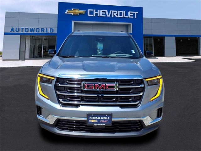 This 2026 GMC Acadia Elevation in Sterling Metallic comes with the following features: 2.5L DOHC 8-Speed Automatic FWD Preferred Equipment Group 4SC, 18 x 7.5 Aluminum Wheels, 8-Way Power Driver Seat Adjuster, Auto High-beam Headlights, Brake assist, Dual front side impact airbags, Front fog lights, Low tire pressure warning, Navigation System, Occupant sensing airbag, Power Liftgate, Power steering, Rear air conditioning, Rear side impact airbag, Remote keyless entry, Traction control, 12 Speakers, 3.49 Final Drive Axle Ratio, 3rd row seats: split-bench, 4-Way Manual Front Passenger Seat Adjuster, 4-Wheel Disc Brakes, 8-Passenger Seating (2-3-3 Seating Configuration), ABS brakes, Air Conditioning, Alloy wheels, AM/FM radio: SiriusXM with 360L, Apple CarPlay/Android Auto, Automatic temperature control, Bodyside moldings, Bumpers: body-color, Cloth Seat Trim, Compass, Delay-off headlights, Driver door bin, Driver vanity mirror, Dual front impact airbags, Electronic Stability Control, Emergency communication system: OnStar Services capable, Exterior Parking Camera Rear, Four wheel independent suspension, Front anti-roll bar, Front Bucket Seats, Front Center Armrest, Front dual zone A/C, Front License Plate Bracket, Front reading lights, Fully automatic headlights, Heated door mirrors, Heated front seats, Heated steering wheel, Illuminated entry, Leather steering wheel, Outside temperature display, Overhead airbag, Overhead console, Panic alarm, Passenger door bin, Passenger vanity mirror, Power door mirrors, Power driver seat, Power windows, Radio data system, Rear anti-roll bar, Rear reading lights, Rear seat center armrest, Rear window defroster, Rear window wiper, Security system, Speed control, Speed-sensing steering, Split folding rear seat, Spoiler, Sport steering wheel, Steering wheel mounted audio controls, Tachometer, Telescoping steering wheel, Tilt steering wheel, Trip computer, Turn signal indicator mirrors, Variably intermittent wipers, and Voltmeter.