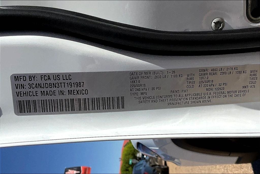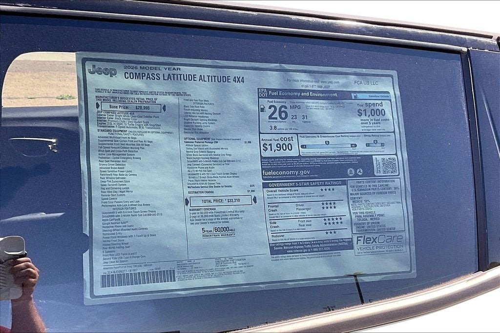 Bright White Clearcoat 2026 Jeep Compass Latitude 4WD 8-Speed Automatic 2.0L I4 DOHC Compass Latitude, 4D Sport Utility, 4WD, Bright White Clearcoat, Altitude Special Edition, AM/FM radio: SiriusXM, Bluetooth® Handsfree Phone and Audio, Heated front seats, ParkView Rear Back-Up Camera, Power windows, Remote keyless entry, Speed control, Tilt steering wheel, Wheels: 18 x 7 Gloss Black Painted Aluminum.