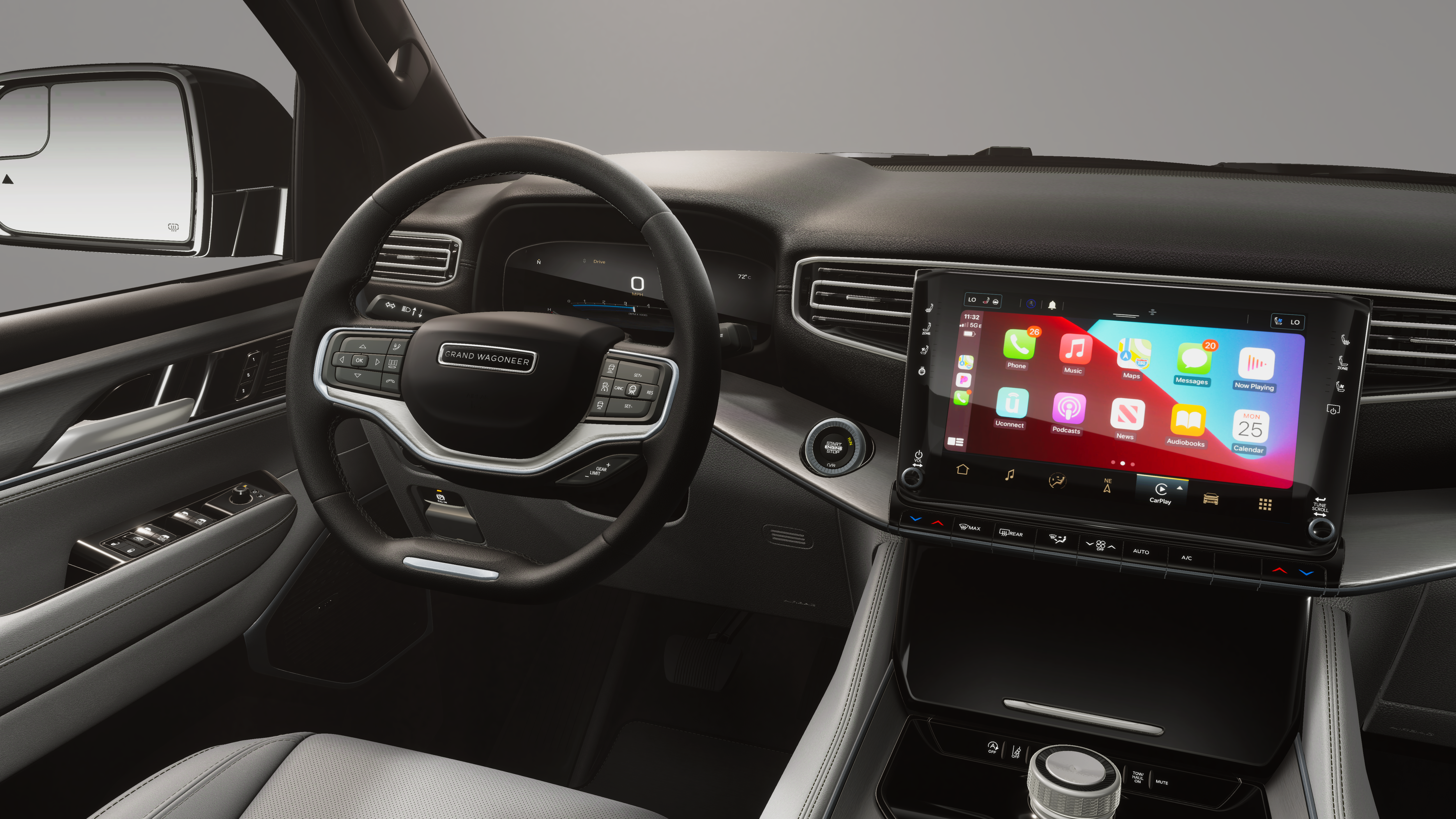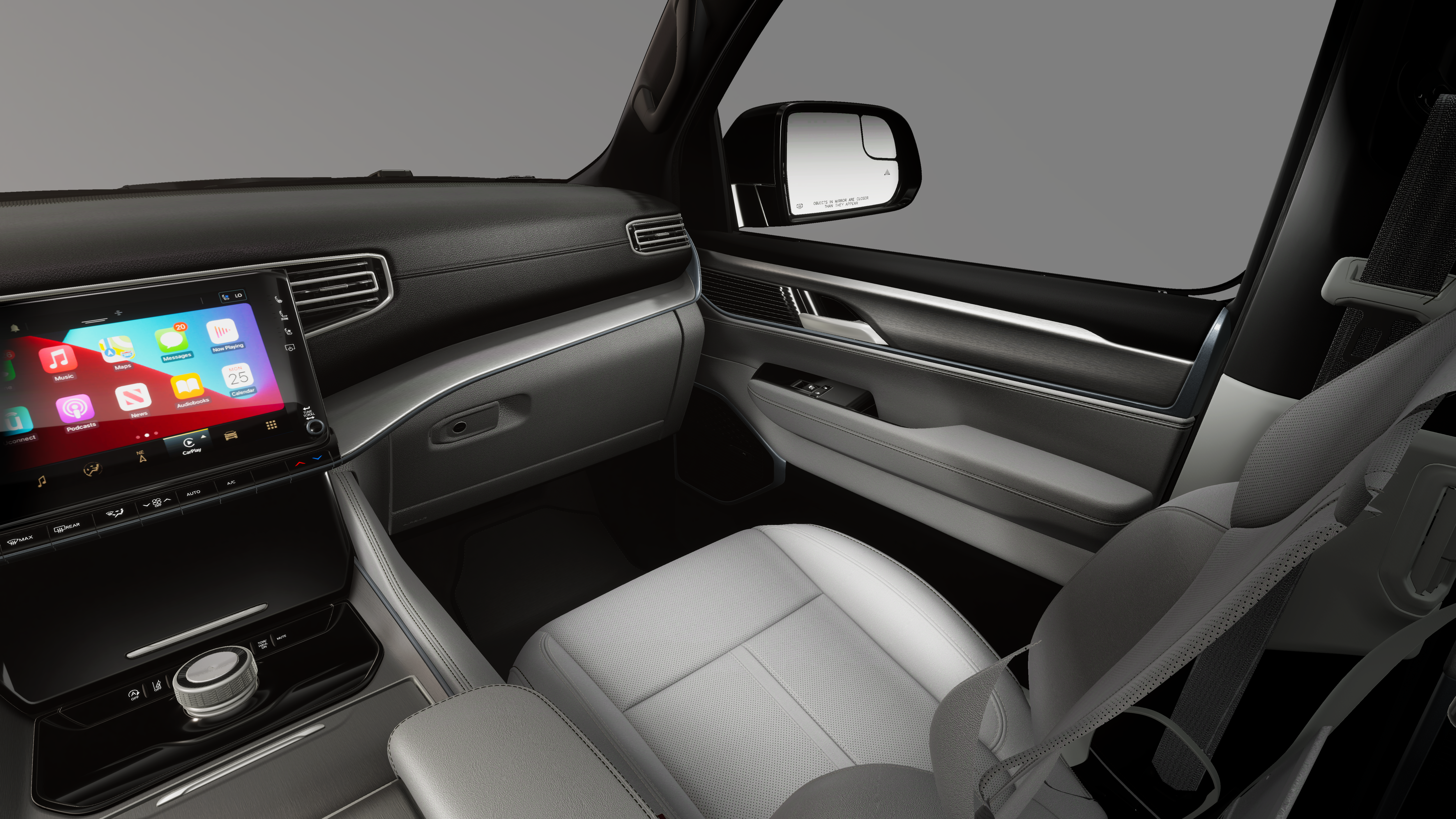 This 2026 Jeep Grand Wagoneer in Velvet Red Pearlcoat comes with the following features: 3.0L I6 8-Speed Automatic RWD Quick Order Package 29E Grand Wagoneer, 118 Mph Maximum Speed Calibration, 3.55 Rear Axle Ratio, 3rd row seats: bench, 4-Wheel Disc Brakes, 9 Speakers, ABS brakes, Air Conditioning, Alloy wheels, AM/FM radio: SiriusXM with 360L, Anti-whiplash front head restraints, Apple CarPlay/Android Auto, Audio memory, Auto Adjust in Reverse Exterior Mirrors, Auto High-beam Headlights, Auto-dimming door mirrors, Auto-Dimming Exterior Driver Mirror, Auto-dimming Rear-View mirror, Auto-leveling suspension, Automatic temperature control, Brake assist, Bumpers: body-color, Compass, Delay-off headlights, Driver door bin, Driver vanity mirror, Driver's Seat Mounted Armrest, Dual front impact airbags, Dual front side impact airbags, Electronic Stability Control, Emergency communication system: Jeep Connect, Exterior Mirrors Approach Lamps, Exterior Mirrors with Memory, Exterior Mirrors with Supplemental Signals, Exterior Parking Camera Rear, Four wheel independent suspension, Front anti-roll bar, Front Bucket Seats, Front Center Armrest w/Storage, Front dual zone A/C, Front fog lights, Front reading lights, Fully automatic headlights, Garage door transmitter, Heated door mirrors, Heated Exterior Mirrors, Heated front seats, Heated steering wheel, Illuminated entry, Knee airbag, Leather Trimmed Bucket Seats, Low tire pressure warning, Manufacturer Statement of Origin, Memory seat, MyFlexCare Service Plan, Navigation System, Normal Duty Suspension, Occupant sensing airbag, Outside temperature display, Overhead airbag, Overhead console, Panic alarm, Passenger door bin, Passenger seat mounted armrest, Passenger vanity mirror, Power door mirrors, Power driver seat, Power Liftgate, Power passenger seat, Power steering, Power windows, Radio data system, Radio: Uconnect 5 Nav with 12.0 Display, Rain sensing wipers, Rear air conditioning, Rear anti-roll bar, Rear reading lights, Rear seat center armrest, Rear window defroster, Rear window wiper, Reclining 3rd row seat, Remote keyless entry, Security system, Speed control, Speed-sensing steering, Speed-Sensitive Wipers, Split folding rear seat, Steering wheel memory, Steering wheel mounted audio controls, Tachometer, Telescoping steering wheel, Tilt steering wheel, Traction control, Trip computer, Turn signal indicator mirrors, Variably intermittent wipers, Ventilated front seats, Voltmeter, and Wheels: 20 x 9 Machine Face Painted Aluminum.