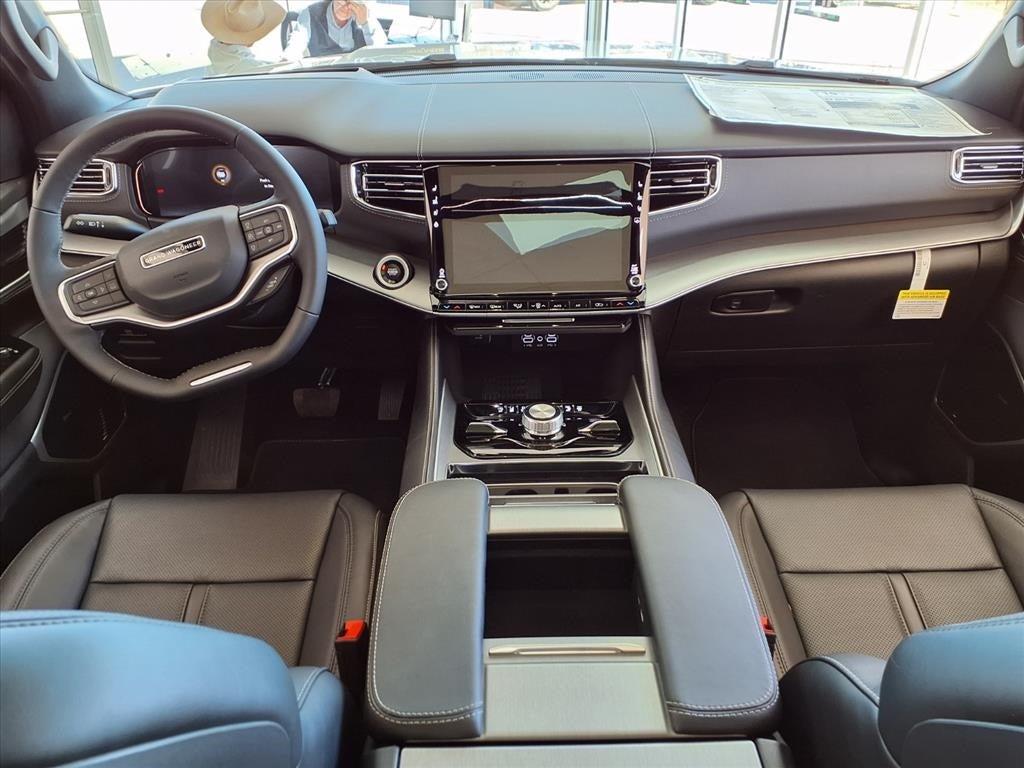 This 2026 Jeep Grand Wagoneer Limited in Bright White Clearcoat comes with the following features: 3.0L I6 8-Speed Automatic 4WD 8-Passenger Seating Package (40/20/40 Row Bench Power Tip/Slide, 8-Passenger Seating, and Full Length Floor Console), Black Appearance Package (118 Mph Maximum Speed Calibration, Black Exterior Accents, Titanium Daylight Opening Upper, Titanium Upper Grille Applique, and Wheels: 22 x 9 Painted Gloss Black), Limited Reserve Package, Quick Order Package 29D Reserve (19 Speaker McIntosh Audio System, 2nd Row Manual Window Shades, 3 Panel Sunroof, Cargo Cover, Cluster 12 TFT Color Display, Heads-Up Display, Instrument Panel, Interior Rear Facing Camera, Luxury Front and Rear Floor Mats, P and P Park and Unpark Assist with Stop System, Power Deployable Running Boards, Quadra-Lift Air Suspension, Reversible Carpet/Vinyl Cargo Mat, Semi Active Damping, Side Distance Warning, Smartphone as a Key Prep, and Surround View Camera System), 3.55 Rear Axle Ratio, 3rd row seats: bench, 4-Wheel Disc Brakes, 9 Speakers, ABS brakes, Air Conditioning, Alloy wheels, AM/FM radio: SiriusXM with 360L, Anti-whiplash front head restraints, Apple CarPlay/Android Auto, Audio memory, Auto Adjust in Reverse Exterior Mirrors, Auto High-beam Headlights, Auto-dimming door mirrors, Auto-Dimming Exterior Driver Mirror, Auto-dimming Rear-View mirror, Auto-leveling suspension, Automatic temperature control, Brake assist, Bumpers: body-color, Compass, Delay-off headlights, Driver door bin, Driver vanity mirror, Driver's Seat Mounted Armrest, Dual front impact airbags, Dual front side impact airbags, Electronic Stability Control, Emergency communication system: Jeep Connect, Exterior Mirrors Approach Lamps, Exterior Mirrors with Memory, Exterior Mirrors with Supplemental Signals, Exterior Parking Camera Rear, Four wheel independent suspension, Front anti-roll bar, Front Bucket Seats, Front Center Armrest w/Storage, Front dual zone A/C, Front fog lights, Front reading lights, Fully automatic headlights, Garage door transmitter, Heated door mirrors, Heated Exterior Mirrors, Heated front seats, Heated rear seats, Heated steering wheel, Illuminated entry, Knee airbag, Leather Trimmed Bucket Seats, Low tire pressure warning, Manufacturer Statement of Origin, Memory seat, MyFlexCare Service Plan, Navigation System, Normal Duty Suspension, Occupant sensing airbag, Outside temperature display, Overhead airbag, Overhead console, Panic alarm, Passenger door bin, Passenger seat mounted armrest, Passenger vanity mirror, Power door mirrors, Power driver seat, Power Liftgate, Power passenger seat, Power steering, Power windows, Radio data system, Radio: Uconnect 5 Nav with 12.0 Display, Rain sensing wipers, Rear air conditioning, Rear anti-roll bar, Rear reading lights, Rear seat center armrest, Rear window defroster, Rear window wiper, Reclining 3rd row seat, Remote keyless entry, Security system, Speed control, Speed-sensing steering, Speed-Sensitive Wipers, Split folding rear seat, Steering wheel memory, Steering wheel mounted audio controls, Tachometer, Telescoping steering wheel, Tilt steering wheel, Traction control, Trip computer, Turn signal indicator mirrors, Variably intermittent wipers, Ventilated front seats, Ventilated rear seats, and Voltmeter.