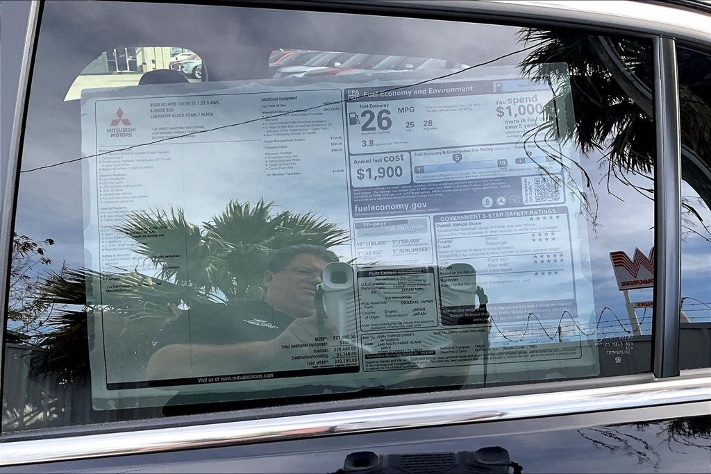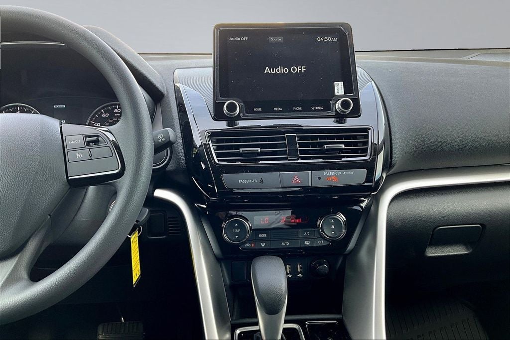 This 2026 Mitsubishi Eclipse Cross ES in Labrador Black Pearl comes with the following features: 1.5L I4 DI Turbocharged DOHC 16V LEV3-ULEV125 152hp CVT 4WD Base, Welcome Package (Carpet Floor Mats and Reversible Cargo Mat), 4 Speakers, 4-Wheel Disc Brakes, ABS brakes, Accessory Cargo Management System, Accessory Eclipse Cross All-Weather Floor Mat Set, Accessory Tonneau Cover, Air Conditioning, Alloy wheels, AM/FM radio, Android Auto & Apple CarPlay, Automatic temperature control, Brake assist, Bumpers: body-color, Cloth Fabric Seating Surfaces, Driver door bin, Driver vanity mirror, Dual front impact airbags, Dual front side impact airbags, Electronic Stability Control, Exterior Parking Camera Rear, Four wheel independent suspension, Front anti-roll bar, Front Bucket Seats, Front Center Armrest, Front fog lights, Front reading lights, Heated door mirrors, Illuminated entry, Knee airbag, Low tire pressure warning, Occupant sensing airbag, Outside temperature display, Overhead airbag, Overhead console, Panic alarm, Passenger door bin, Passenger vanity mirror, Power door mirrors, Power steering, Power windows, Radio data system, Radio: AM/FM 8.0 Smartphone-Link Display Audio, Rear anti-roll bar, Rear seat center armrest, Rear window defroster, Rear window wiper, Remote keyless entry, Security system, Speed control, Speed-sensing steering, Split folding rear seat, Spoiler, Steering wheel mounted audio controls, Tachometer, Telescoping steering wheel, Tilt steering wheel, Traction control, Trip computer, Turn signal indicator mirrors, Variably intermittent wipers, and Wheels: 16 x 6.5J Two-Tone Alloy.