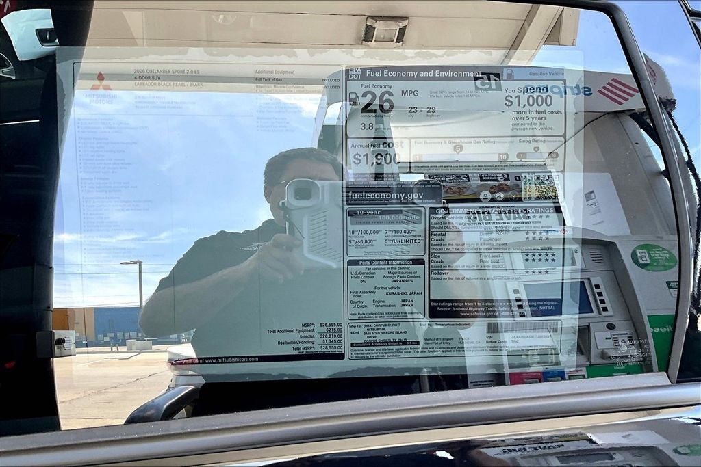 This 2026 Mitsubishi Outlander Sport 2.0 ES in Labrador Black Pearl comes with the following features: 2.0L I4 SMPI DOHC 16V LEV3-ULEV70 148hp CVT 4WD 4WD, 4-Wheel Disc Brakes, ABS brakes, Air Conditioning, AM/FM radio: SiriusXM, Android Auto & Apple CarPlay, Auto High-beam Headlights, Auto-dimming Rear-View mirror, Automatic temperature control, Brake assist, Bumpers: body-color, Delay-off headlights, Driver door bin, Driver vanity mirror, Dual front impact airbags, Dual front side impact airbags, Electronic Stability Control, Exterior Parking Camera Rear, Four wheel independent suspension, Front anti-roll bar, Front Bucket Seats, Front Center Armrest, Front reading lights, Fully automatic headlights, Heated door mirrors, Illuminated entry, Knee airbag, Low tire pressure warning, Occupant sensing airbag, Outside temperature display, Overhead airbag, Panic alarm, Passenger door bin, Passenger vanity mirror, Power door mirrors, Power steering, Power windows, Radio data system, Radio: AM/FM 8.0 Smartphone Link Display Audio, Rain sensing wipers, Rear anti-roll bar, Rear seat center armrest, Rear window defroster, Rear window wiper, Remote keyless entry, Security system, Speed control, Speed-sensing steering, Split folding rear seat, Spoiler, Steering wheel mounted audio controls, Tachometer, Telescoping steering wheel, Tilt steering wheel, Traction control, Trip computer, and Variably intermittent wipers.