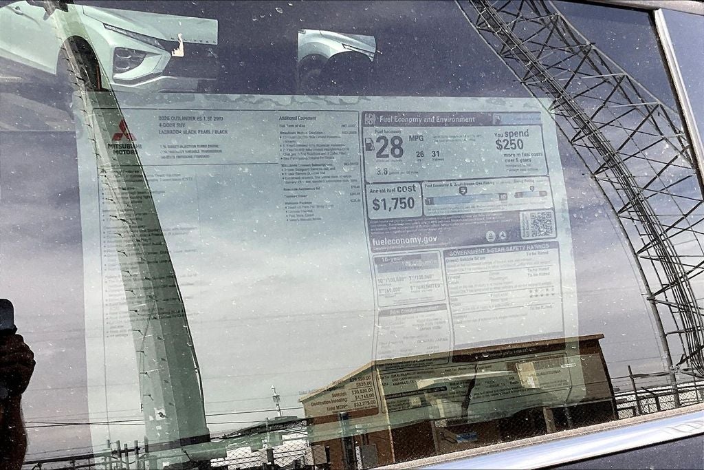 This 2026 Mitsubishi Outlander ES in Labrador Black Pearl comes with the following features: 1.5L I4 Turbocharged DOHC 16V LEV3-SULEV30 174hp CVT FWD Welcome Package, 18 Alloy Wheels, 3rd row seats: split-bench, 4-Wheel Disc Brakes, 8 Speakers, ABS brakes, Accessory Roadside Assistance Kit, Accessory Tonneau Cover, Air Conditioning, Alloy wheels, AM/FM radio: SiriusXM, Android Auto & Apple CarPlay, Auto High-beam Headlights, Auto-dimming Rear-View mirror, Automatic temperature control, Blind Spot Warning, Brake assist, Bumpers: body-color, Cloth Fabric Seating Surfaces, Compass, Delay-off headlights, Driver door bin, Driver vanity mirror, Dual front impact airbags, Dual front side impact airbags, Electronic Stability Control, Emergency communication system: Mitsubishi Connect w/ 24-month trial, Exterior Parking Camera Rear, Four wheel independent suspension, Front anti-roll bar, Front Bucket Seats, Front Center Armrest w/Storage, Front dual zone A/C, Front reading lights, Fully automatic headlights, Illuminated entry, Knee airbag, Low tire pressure warning, Navigation System, Occupant sensing airbag, Outside temperature display, Overhead airbag, Overhead console, Panic alarm, Passenger door bin, Passenger vanity mirror, Power door mirrors, Power steering, Power windows, Radio data system, Radio: AM/FM 12.3 Navigation with Smartphone-Link, Rear anti-roll bar, Rear Parking Sensors, Rear seat center armrest, Rear side impact airbag, Rear window defroster, Rear window wiper, Reclining 3rd row seat, Remote keyless entry, Security system, Speed control, Speed-Sensitive Wipers, Split folding rear seat, Spoiler, Steering wheel mounted audio controls, Tachometer, Telescoping steering wheel, Tilt steering wheel, Traction control, Trip computer, Turn signal indicator mirrors, and Variably intermittent wipers. Price includes: $1000 - Customer Cash. Exp. 04/30/2026