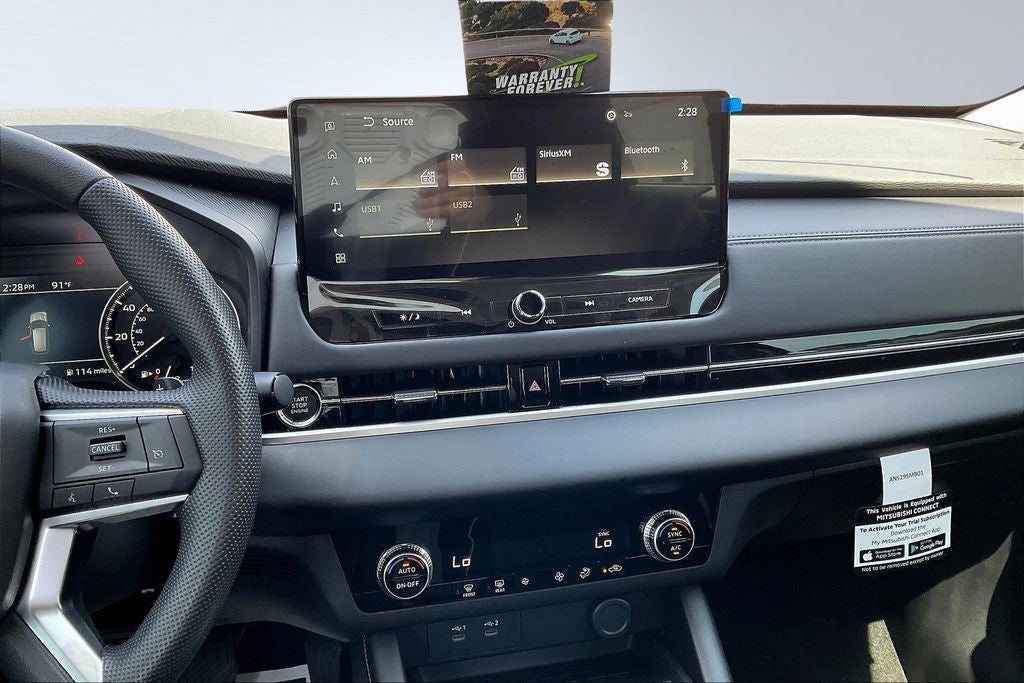 - Radio: AM/FM 12.3" Navigation w/Smartphone-Link -inc: wireless Apple CarPlay and Google Android Auto, Mitsubishi Connect w/5-year safeguard trial and 1-year remote services trial (mobile app enrollment required), Bluetooth® wireless technology, steering wheel controls for phone, audio and voice recognition, 2 front USB-C ports,SXM 360L audio w/90-day SXM all access subscription and SXM traffic & travel link w/90-day subscription and dynamic sound Yamaha premium system w/8 speakers