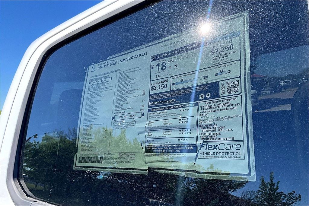 This 2026 Ram 1500 Big Horn/Lone Star in Bright White Clearcoat comes with the following features: HEMI 5.7L V8 Multi Displacement VVT eTorque 8-Speed Automatic 4WD Big Horn Level 2 Equipment Group (115V Auxiliary Power Outlet, 115V Auxiliary Rear Power Outlet, 12 Touchscreen Display, 2nd Row in Floor Storage Bins, 3 Rear Seat Head Restraints, 4 Way Front Headrests, 400W Inverter, 4G LTE Wi-Fi Hot Spot, 9 Amplified Speakers with Subwoofer, Air Conditioning ATC with Dual Zone Control, Apple CarPlay, Auto Power-Folding Mirrors, Auto-Dimming Exterior Driver Mirror, Auto-Dimming Rear-View Mirror, Black Exterior Mirrors, Black Premium Power Mirrors, Body Color Fender Flares, Bucket Seats, Center Console Parts Module, Cluster 7.0 TFT Color Display, Configurable Drive Mode, Connected Travel and Traffic Services, Connectivity - US/Canada, Convex Wide-Angle Exterior Mirror Insert, Deluxe Cloth Bucket Seats, Disassociated Touchscreen Display, Exterior Mirrors Courtesy Lamps, Exterior Mirrors with Heating Element, Exterior Mirrors with Supplemental Signals, Front Seat Back Map Pockets, Full Length Floor Console, Global Telematics Box Module, Glove Box Lamp, Google Android Auto, GPS Antenna Input, GPS Navigation, HD Radio, Heated Front Seats, Heated Steering Wheel, Integrated Center Stack Radio, Integrated Voice Command with Bluetooth®, Leather Wrapped Steering Wheel, LED Dome Lamp with on/Off Switch, LED Footwell Lighting, Manual Adjust 4-Way Front Passenger Seat, Media Hub with 2 Charge Only USBs, Overhead LED Lamps, Power 2-Way Driver Lumbar Adjust, Power Adjust 8-Way Driver Seat, Power Adjustable Pedals, Premium Overhead Console, Radio: Uconnect 5 Navigation with 12.0 Display, Rear 60/40 Folding Seat, Rear Center Armrest, Rear Power Sliding Window, Rear Window Defroster, Remote Tailgate Release, Security Alarm, SiriusXM Radio Service, SiriusXM with 360L, Steering Wheel Mounted Audio Controls, Sun Visors with Illuminated Vanity Mirrors, Universal Garage Door Opener, and USB Host Flip), Protection Group (Tow Hooks), Quick Order Package 27R Lone Star (Lone Star Badge), 33 Gallon Fuel Tank, 4-Wheel Disc Brakes, 48V Belt Starter Generator, 6 Speakers, ABS brakes, Air Conditioning, Alloy wheels, AM/FM radio, Anti-Spin Differential Rear Axle, Apple CarPlay/Android Auto, Auto High-beam Headlights, Brake assist, Bumpers: chrome, Cloth Bucket Seats, Cluster 12 TFT Color Display, Compass, Delay-off headlights, Driver door bin, Dual front impact airbags, Dual front side impact airbags, Electronic Stability Control, Front anti-roll bar, Front Bucket Seats, Front Center Armrest w/Storage, Front fog lights, Front License Plate Bracket, Front reading lights, Front wheel independent suspension, Fully automatic headlights, Heated door mirrors, Illuminated entry, Low tire pressure warning, Manual Adjust 4-Way Driver Seat, Manual Folding Exterior Mirrors, Manufacturer's Statement of Origin, MOPAR Front and Rear Rubber Floor Mats, MyFlexCare Service Plan, Occupant sensing airbag, Outside temperature display, Overhead airbag, Overhead console, Panic alarm, ParkView Rear Back-Up Camera, Passenger door bin, Passenger vanity mirror, Power door mirrors, Power steering, Power windows, Radio data system, Radio: Uconnect 5 W with 8.4 Display, RAM Grille Badge - Chrome, Rear anti-roll bar, Rear step bumper, Remote keyless entry, Speed control, Supplier Part Tracking (J-1), Tachometer, Telescoping steering wheel, Tilt steering wheel, Traction control, Trailer Brake Con Price includes: $1000 - 2026 Southwest BC State of Texas Regional Bonus Cash . Exp. 04/30/2026 $3500 - 2026 National Retail Bonus Cash . Exp. 04/30/2026 $750 - 2026 Southwest BC Retail Bonus Cash . Exp. 0