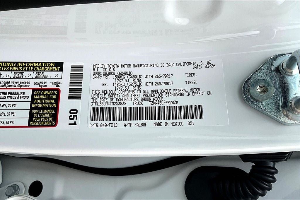- Vehicle Name: Toyota Tacoma 4WD