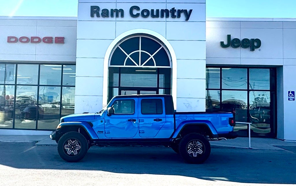 This 2024 Jeep Gladiator Sport in Hydro Blue Pearlcoat comes with the following features: 3.6L V6 24V VVT 8-Speed Automatic 4WD Quick Order Package 24S Sport S (Deep Tint Sunscreen Windows, Front 1-Touch Down Power Windows, Full Speed Forward Collision Warning Plus, Power Heated Mirrors, Premium Wrapped Steering Wheel, Sun Visors w/Illuminated Vanity Mirrors, and Wheels: 17 x 7.5 Gray), 110 MPH Vehicle Max Speed Calibration, 12.3 Touchscreen Display, 3.73 Rear Axle Ratio, 4-Wheel Disc Brakes, 4G LTE Wi-Fi Hot Spot, 8 Speakers, ABS brakes, Air Conditioning, Alexa Built-In, AM/FM radio: SiriusXM with 360L, Apple CarPlay, Apple CarPlay/Android Auto, Black 3-Piece Hard Top, Brake assist, Cloth Low-Back Bucket Seats, Compass, Connectivity - US/Canada, Delay-off headlights, Disassociated Touchscreen Display, Driver door bin, Driver vanity mirror, Dual front impact airbags, Dual front side impact airbags, Electronic Stability Control, Emergency communication system: Jeep Connect, Front anti-roll bar, Front Bucket Seats, Front Center Armrest w/Storage, Front fog lights, Front License Plate Bracket, Front reading lights, Google Android Auto, Integrated Center Stack Radio, Integrated roll-over protection, Low tire pressure warning, MOPAR All-Weather Slush Mats, MOPAR Spray In Bedliner, Normal Duty Suspension, Occupant sensing airbag, Outside temperature display, Overhead airbag, ParkView Rear Back-Up Camera, Passenger door bin, Passenger vanity mirror, Power steering, Radio data system, Radio: Uconnect 5 w/12.3 Display, Rear anti-roll bar, Rear reading lights, Rear Sliding Window, SiriusXM Radio Service, SiriusXM w/360L, Speed control, Split folding rear seat, Steering wheel mounted audio controls, Tachometer, Telescoping steering wheel, Tilt steering wheel, Traction control, Trip computer, Variably intermittent wipers, Voltmeter, and Wheels: 17 x 7.5 Black Steel Styled.