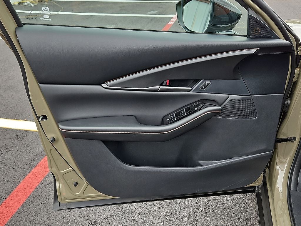 This 2025 Mazda CX-30 2.5 Carbon Turbo in Zircon Sand Metallic comes with the following features: 2.5L I4 6-Speed Automatic AWD 4-Wheel Disc Brakes, 8 Speakers, ABS brakes, Air Conditioning, Alloy wheels, AM/FM radio, AppLink/Apple CarPlay and Android Auto, Auto High-beam Headlights, Automatic temperature control, Black Lug Nuts & Black Wheel Locks, Brake assist, Bumpers: body-color, Cargo Cover, Cargo Net, Cargo Tray, Compass, Delay-off headlights, Driver door bin, Driver vanity mirror, Dual front impact airbags, Dual front side impact airbags, Electronic Stability Control, Emergency communication system: Mazda Connected Services (3-year trial subscription included), Exterior Parking Camera Rear, Front anti-roll bar, Front Bucket Seats, Front Center Armrest, Front dual zone A/C, Front reading lights, Front wheel independent suspension, Fully automatic headlights, Heated door mirrors, Heated Front Bucket Seats, Heated front seats, Illuminated entry, Knee airbag, Leather Shift Knob, Leather steering wheel, Leatherette Seat Trim, Low tire pressure warning, MAZDA CONNECT Infotainment System, Memory seat, Occupant sensing airbag, Outside temperature display, Overhead airbag, Overhead console, Panic alarm, Passenger door bin, Passenger vanity mirror, Power door mirrors, Power driver seat, Power moonroof, Power steering, Power windows, Radio data system, Radio: AM/FM/HD Audio System, Rain sensing wipers, Rear seat center armrest, Rear side impact airbag, Rear window defroster, Rear window wiper, Remote keyless entry, Speed control, Speed-sensing steering, Split folding rear seat, Spoiler, Steering wheel mounted audio controls, Tachometer, Telescoping steering wheel, Tilt steering wheel, Traction control, Trip computer, Turn signal indicator mirrors, Variably intermittent wipers, and Wheels: 18 x 7J Aluminum Alloy.