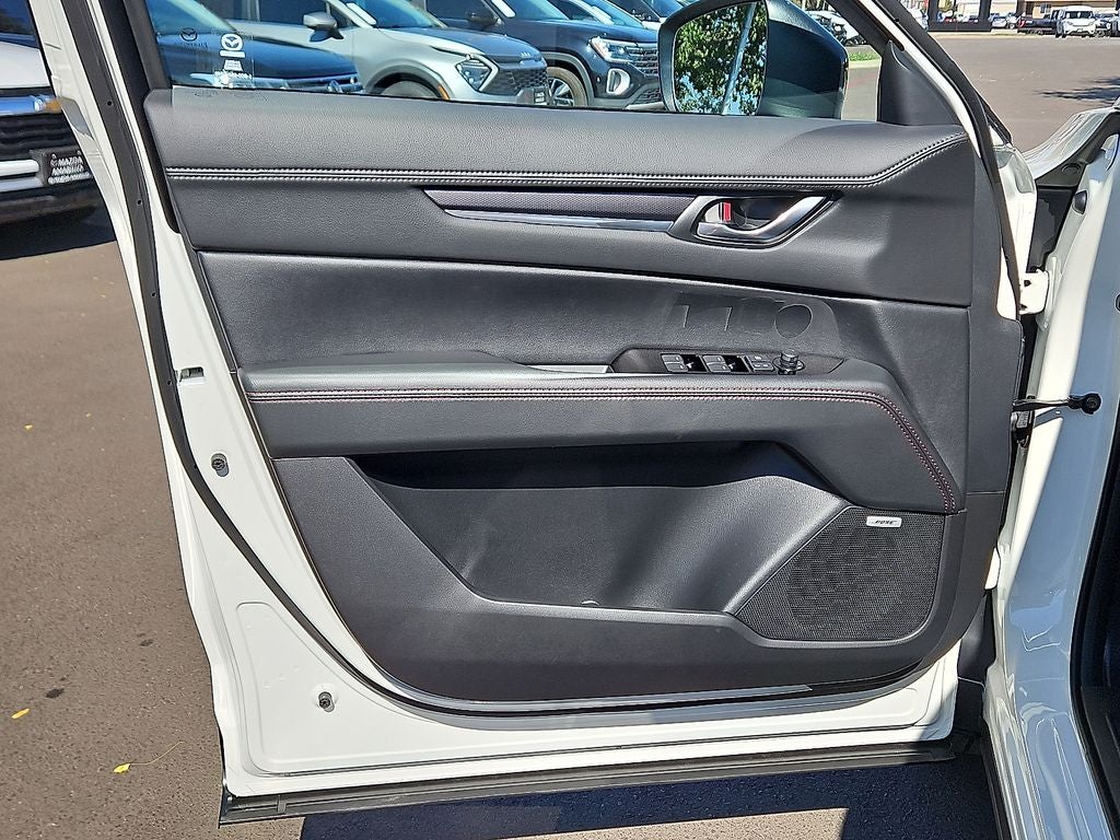 This 2025 Mazda CX-5 2.5 S Carbon Edition in Rhodium White Metallic comes with the following features: SKYACTIV® 2.5L 4-Cylinder DOHC 16V 6-Speed Automatic AWD 10 Speakers, 4-Wheel Disc Brakes, ABS brakes, Air Conditioning, Alloy wheels, AM/FM radio, AppLink/Apple CarPlay and Android Auto, Auto High-beam Headlights, Auto-dimming Rear-View mirror, Automatic temperature control, Black Lug Nuts & Black Wheel Locks, Brake assist, Bumpers: body-color, Carbon Edition License Plate Frame, Cargo Blocks, Cargo Net, Delay-off headlights, Driver door bin, Driver vanity mirror, Dual front impact airbags, Dual front side impact airbags, E911 Automatic Emergency Notification, Electronic Stability Control, Emergency communication system: MAZDA CONNECT, Exterior Parking Camera Rear, First Aid Kit, Four wheel independent suspension, Front anti-roll bar, Front Bucket Seats, Front Center Armrest w/Storage, Front dual zone A/C, Front reading lights, Fully automatic headlights, Garage door transmitter: HomeLink, Heated Front Bucket Seats, Heated front seats, Illuminated entry, Infotainment System Voice Command, Leather Seat Trim, Leather Shift Knob, Leather steering wheel, Low tire pressure warning, Memory seat, Multifunction Commander Control, Occupant sensing airbag, Outside temperature display, Overhead airbag, Overhead console, Pandora, Panic alarm, Passenger door bin, Passenger vanity mirror, Power door mirrors, Power driver seat, Power Liftgate, Power moonroof, Power passenger seat, Power steering, Power windows, Radio Broadcast Data System Program Information, Radio data system, Radio: AM/FM/HD Audio System, Rain sensing wipers, Rear anti-roll bar, Rear reading lights, Rear seat center armrest, Rear window defroster, Rear window wiper, Remote keyless entry, SMS Text Msg Audio Delivery & Reply, Speed control, Speed-sensing steering, Split folding rear seat, Spoiler, Steering wheel mounted audio controls, Tachometer, Telescoping steering wheel, Tilt steering wheel, Traction control, Trip computer, Turn signal indicator mirrors, Variably intermittent wipers, and Wheels: 19 x 7J Aluminum Alloy.