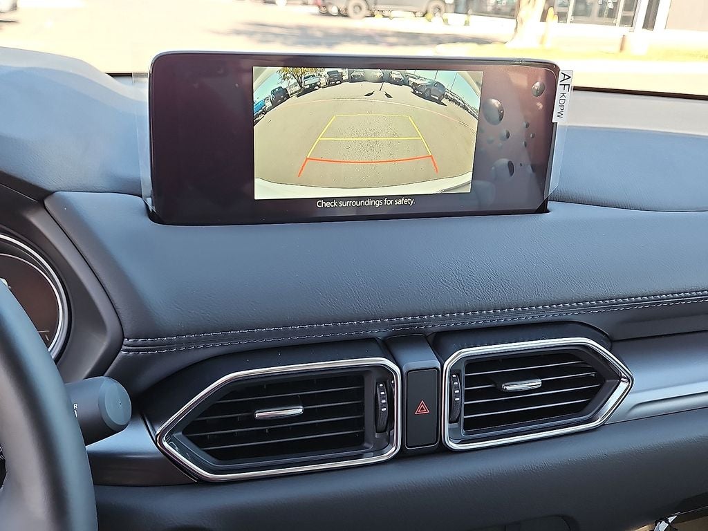 This 2025 Mazda CX-5 2.5 S Preferred Package in Rhodium White Metallic comes with the following features: SKYACTIV® 2.5L 4-Cylinder DOHC 16V 6-Speed Automatic AWD 4-Wheel Disc Brakes, 6 Speakers, ABS brakes, Air Conditioning, All-Weather Floor Mats, Alloy wheels, AM/FM radio, AppLink/Apple CarPlay and Android Auto, Auto High-beam Headlights, Auto-dimming Rear-View mirror, Automatic temperature control, Brake assist, Bumpers: body-color, Cargo Tray, Delay-off headlights, Driver door bin, Driver vanity mirror, Dual front impact airbags, Dual front side impact airbags, E911 Automatic Emergency Notification, Electronic Stability Control, Emergency communication system: MAZDA CONNECT, Exterior Parking Camera Rear, First Aid Kit, Four wheel independent suspension, Front anti-roll bar, Front Bucket Seats, Front Center Armrest w/Storage, Front dual zone A/C, Front reading lights, Fully automatic headlights, Garage door transmitter: HomeLink, Heated Front Bucket Seats, Heated front seats, Illuminated entry, Infotainment System Voice Command, Leather Seat Trim, Leather Shift Knob, Leather steering wheel, Low tire pressure warning, Memory seat, Multifunction Commander Control, Occupant sensing airbag, Outside temperature display, Overhead airbag, Overhead console, Pandora, Panic alarm, Passenger door bin, Passenger vanity mirror, Power door mirrors, Power driver seat, Power Liftgate, Power moonroof, Power passenger seat, Power steering, Power windows, Radio Broadcast Data System Program Information, Radio data system, Radio: AM/FM/HD Audio System, Rain sensing wipers, Rear anti-roll bar, Rear reading lights, Rear seat center armrest, Rear window defroster, Rear window wiper, Remote keyless entry, Retractable Cargo Cover, Rhodium White Metallic Paint, SMS Text Msg Audio Delivery & Reply, Speed control, Speed-sensing steering, Split folding rear seat, Spoiler, Steering wheel mounted audio controls, Tachometer, Telescoping steering wheel, Tilt steering wheel, Traction control, Trip computer, Turn signal indicator mirrors, Variably intermittent wipers, and Wheels: 17 x 7J Aluminum Alloy.
