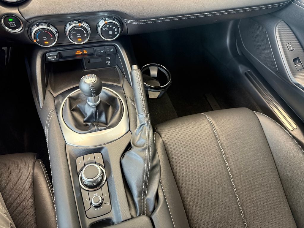 This 2025 Mazda MX-5 Miata RF Grand Touring in Aero Gray Metallic comes with the following features: 2.0L 4-Cylinder DOHC 16V 6-Speed Manual RWD 17 black metallic finish alloy wheels, 4-Wheel Disc Brakes, 9 Speakers, ABS brakes, aero gray metallic paint charge, Air Conditioning, Alloy wheels, AM/FM radio: SiriusXM, AppLink/Apple CarPlay and Android Auto, Auto High-beam Headlights, Auto-dimming door mirrors, Auto-dimming Rear-View mirror, Automatic temperature control, black lug nuts and black wheel locks, bose audio system with audiopilot, Brake assist, Bumpers: body-color, cargo net, Convertible HardTop, Convertible roof lining, Convertible roof wind blocker, Delay-off headlights, Driver vanity mirror, Dual front impact airbags, Dual front side impact airbags, Electronic Stability Control, Emergency communication system: MAZDA CONNECT, Exterior Parking Camera Rear, Four wheel independent suspension, Front anti-roll bar, Front Bucket Seats, Front Center Armrest, Fully automatic headlights, Garage door transmitter: HomeLink, Glass rear window, Heated door mirrors, heated front bucket seats, Heated front seats, Illuminated entry, Leather Shift Knob, leather-trimmed upholstery, Low tire pressure warning, MAZDA CONNECT Infotainment system, Navigation System, Occupant sensing airbag, Outside temperature display, Panic alarm, Passenger vanity mirror, Power convertible roof, Power door mirrors, Power steering, Power windows, Radio data system, Rain sensing wipers, Rear anti-roll bar, Rear window defroster, Remote keyless entry, Speed control, Speed-sensing steering, Sport steering wheel, Steering wheel mounted audio controls, Tachometer, Telescoping steering wheel, Tilt steering wheel, Traction control, Trip computer, and Variably intermittent wipers.