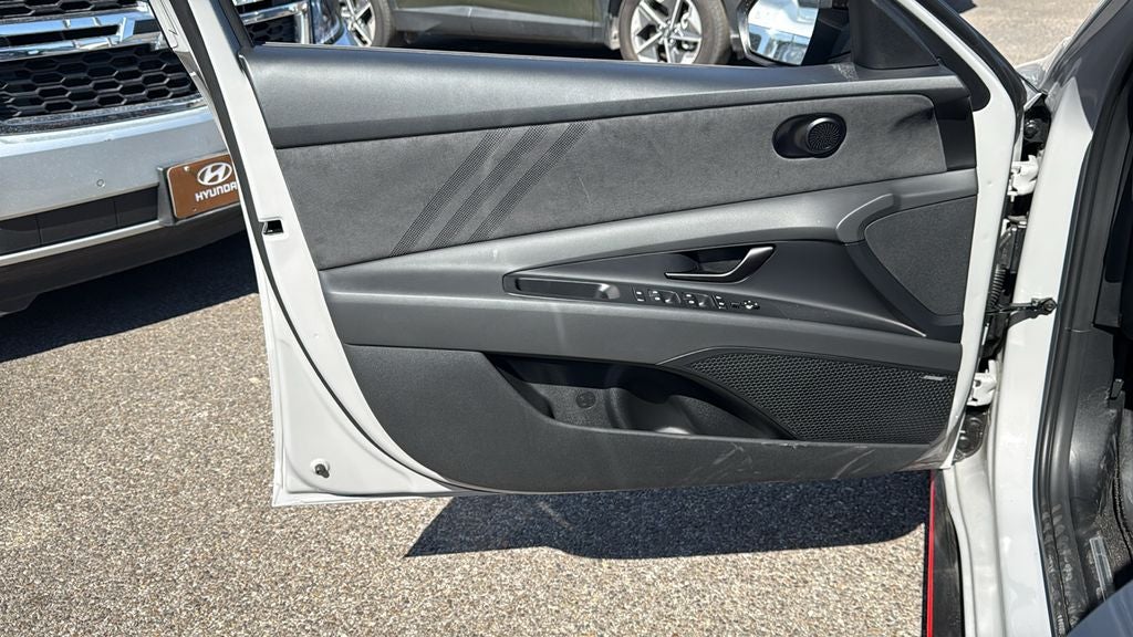 This 2026 Hyundai Elantra N in Cyber Gray comes with the following features: 2.0L 4-Cylinder Turbocharged N 8-Speed Wet Dual Clutch FWD Option Group 01, 4-Wheel Disc Brakes, 8 Speakers, ABS brakes, Air Conditioning, Alloy wheels, AM/FM radio: SiriusXM, Apple CarPlay & Android Auto, Auto High-beam Headlights, Automatic temperature control, Brake assist, Bumpers: body-color, Cargo Net, Cargo Tray, Compass, Delay-off headlights, Driver door bin, Driver vanity mirror, Dual front impact airbags, Dual front side impact airbags, Electronic Stability Control, Emergency communication system: None, Exterior Parking Camera Rear, First Aid Kit, Four wheel independent suspension, Front anti-roll bar, Front Bucket Seats, Front Center Armrest w/Storage, Front dual zone A/C, Front reading lights, Fully automatic headlights, Heated door mirrors, Heated front seats, Illuminated entry, Leather Shift Knob, Leather steering wheel, Leather/Alcantara Seat Trim, Low tire pressure warning, N Light Heated Sport Bucket Seats, Navigation System, Occupant sensing airbag, Outside temperature display, Overhead airbag, Overhead console, Panic alarm, Passenger door bin, Passenger vanity mirror, Power door mirrors, Power moonroof, Power steering, Power windows, Radio: Bose AM/FM/HD/SXM Audio System, Rear side impact airbag, Rear window defroster, Remote keyless entry, Security system, Speed control, Speed-sensing steering, Spoiler, Steering wheel mounted audio controls, Tachometer, Telescoping steering wheel, Tilt steering wheel, Traction control, Trip computer, Turn signal indicator mirrors, Variably intermittent wipers, and Wheels: 19 x 8.0 Forged Alloy.