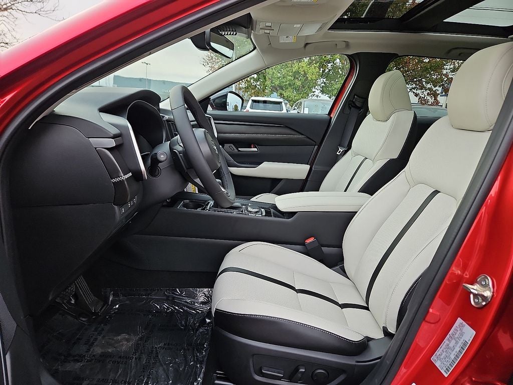 This 2026 Mazda CX-50 2.5 Turbo in soul red crystal metallic comes with the following features: 2.5L I4 Turbocharged DOHC 16V LEV3-ULEV70 227hp 6-Speed Automatic AWD ABS brakes, Active Cruise Control, Alloy wheels, Electronic Stability Control, Front dual zone A/C, Heated door mirrors, Heated front seats, Illuminated entry, Leather Seat Trim, Low tire pressure warning, Power Liftgate, Power moonroof, Remote keyless entry, Traction control, 12 Speakers, 4-Wheel Disc Brakes, Air Conditioning, AM/FM radio: SiriusXM, AppLink/Apple CarPlay and Android Auto, Auto High-beam Headlights, Auto-dimming Rear-View mirror, Automatic temperature control, Brake assist, Bumpers: body-color, Delay-off headlights, Driver door bin, Driver vanity mirror, Dual front impact airbags, Dual front side impact airbags, Emergency communication system: MAZDA CONNECT, Exterior Parking Camera Rear, Front anti-roll bar, Front Bucket Seats, Front Center Armrest, Front reading lights, Front wheel independent suspension, Fully automatic headlights, Garage door transmitter: HomeLink, Heads-Up Display, Heated and Ventilated Front Seats with 3 Level Adjustment, Knee airbag, Leather Shift Knob, Leather steering wheel, Memory seat, Occupant sensing airbag, Outside temperature display, Overhead airbag, Overhead console, Panic alarm, Passenger door bin, Passenger vanity mirror, Power door mirrors, Power driver seat, Power passenger seat, Power steering, Power windows, Radio data system, Radio: AM/FM/HD Bose 12-Speaker Audio Sound System, Rain sensing wipers, Rear seat center armrest, Rear window defroster, Rear window wiper, Speed control, Speed-sensing steering, Split folding rear seat, Spoiler, Steering wheel mounted audio controls, Tachometer, Telescoping steering wheel, Tilt steering wheel, Trip computer, Turn signal indicator mirrors, Variably intermittent wipers, Ventilated front seats, and Wheels: 20 x 8J Aluminum Alloy Black Metallic with Machining Cut.