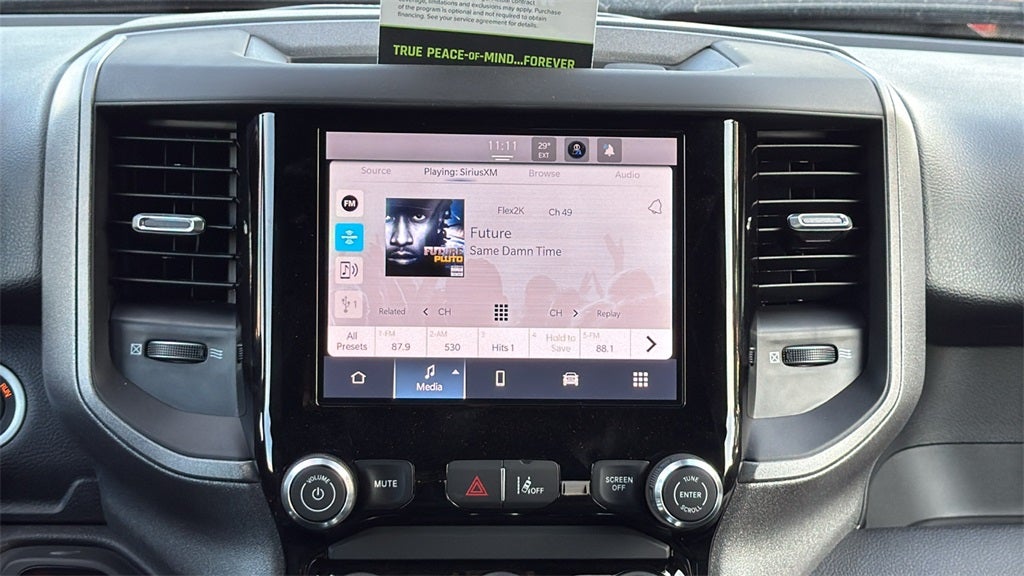 This 2026 Ram 1500 Warlock in Granite Crystal Metallic Clearcoat comes with the following features: 3.0L I6 8-Speed Automatic 4WD Quick Order Package 21B Warlock (115V Auxiliary Power Outlet, 400W Inverter, Cluster 7.0 TFT Color Display, E-Locker Rear Axle, Front LED Fog Lamps, Front Performance Tuned Shock Absorbers, MOPAR Front and Rear Rubber Floor Mats, Raised Ride Height, Rear Performance Tuned Shock Absorbers, Selec-Speed Control, Tow Hooks, Warlock Decal, and Wheels: 18 x 8.0 Black Painted Aluminum), Tradesman Level 1 Equipment Group (2nd Row in Floor Storage Bins, Cloth Bench Seat, Front and Rear Floor Mats, Rear Power Sliding Window, SiriusXM Radio Service, and SiriusXM Satellite Radio), 4 Way Front Headrests, 4-Wheel Disc Brakes, 48V Belt Starter Generator, 4G LTE Wi-Fi Hot Spot, 6 Speakers, ABS brakes, Air Conditioning, AM/FM radio, Apple CarPlay, Apple CarPlay/Android Auto, Auto High-beam Headlights, Black Exterior Mirrors, Brake assist, Compass, Connectivity - US/Canada, Delay-off headlights, Driver door bin, Dual front impact airbags, Dual front side impact airbags, Electronic Stability Control, Exterior Mirrors with Heating Element, For Details Visit DriveUconnect.com, Front anti-roll bar, Front Center Armrest, Front License Plate Bracket, Front reading lights, Front wheel independent suspension, Fully automatic headlights, Global Telematics Box Module, Google Android Auto, GPS Antenna Input, Heated door mirrors, Heavy Duty Vinyl 40/20/40 Split Bench Seat, Illuminated entry, Integrated Center Stack Radio, Integrated Voice Command with Bluetooth®, Low tire pressure warning, Manual Adjust 4-Way Driver Seat, Manual Adjust 4-Way Front Passenger Seat, Manual Folding Exterior Mirrors, Manufacturer's Statement of Origin, Mopar Black Tubular Side Steps, MyFlexCare Service Plan, Occupant sensing airbag, Outside temperature display, Overhead airbag, Overhead console, Panic alarm, ParkView Rear Back-Up Camera, Passenger door bin, Passenger vanity mirror, Power door mirrors, Power steering, Power windows, Radio data system, Radio: Uconnect 5 W with 8.4 Display, Rear anti-roll bar, Rear Folding Seat, Rear step bumper, Remote keyless entry, Speed control, Supplier Part Tracking (J-1), Tachometer, Telescoping steering wheel, Tilt steering wheel, Traction control, USB Host Flip, Variably intermittent wipers, Voltmeter, and Wheels: 18 x 7.5 Steel PainteD. Price includes: $3500 - 2026 National Retail Consumer Cash . Exp. 02/02/2026