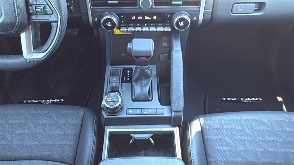 This 2026 Toyota Tacoma TRD Off-Road in Black comes with the following features: 2.4L 4-Cylinder 8-Speed Automatic 4WD Towing Package (Integrated Trailer Brake Controller), TRD Off Road Premium Package (3D Multi-Terrain Monitor, 8-Way Power Driver and Passenger Seat Adjusters, JBL Premium Audio, Power Horizontal Rear Window, Pre-Wire Accommodation (bed Power Port), Radio: 14 Toyota Audio Multimedia with TRD Premium, Smart Key w/Digital Key Technology, and TACOMA Stamped Power Open and Close Tailgate), 4WD, 18 Wheels, 3.583 Axle Ratio, 4-Wheel Disc Brakes, 6 Speakers, ABS brakes, Air Conditioning, Alloy wheels, AM/FM radio: SiriusXM, Anti-whiplash front head restraints, Apple CarPlay/Android Auto, Auto High-beam Headlights, Auto-dimming Rear-View mirror, Automatic temperature control, Bed Scene Lighting, Black Chrome Exhaust Tip, Brake assist, Bumpers: body-color, Driver door bin, Driver vanity mirror, Dual front impact airbags, Dual front side impact airbags, Electronic Stability Control, Emergency communication system: Safety Connect (up to 10-year trial subscription), Exterior Parking Camera Rear, Fabric Seat Trim, Four wheel independent suspension, Front and Rear Recovery Hooks, Front anti-roll bar, Front Bucket Seats, Front Center Armrest, Front fog lights, Front reading lights, Fully automatic headlights, Heated door mirrors, Illuminated entry, Knee airbag, Leather Shift Knob, Leather steering wheel, Low tire pressure warning, Occupant sensing airbag, Outside temperature display, Overhead airbag, Overhead console, Panic alarm, Passenger door bin, Passenger vanity mirror, Power door mirrors, Power steering, Power windows, Radio: 8 Toyota Audio Multimedia, Rear step bumper, Rear window defroster, Remote keyless entry, Removable Predator Step, Security system, SofTex Seat Trim, Speed control, Speed-sensing steering, Split folding rear seat, Spray-on Bed Liner, Steering wheel mounted audio controls, Tachometer, Telescoping steering wheel, Tilt steering wheel, Traction control, Trip computer, Turn signal indicator mirrors, and Variably intermittent wipers.