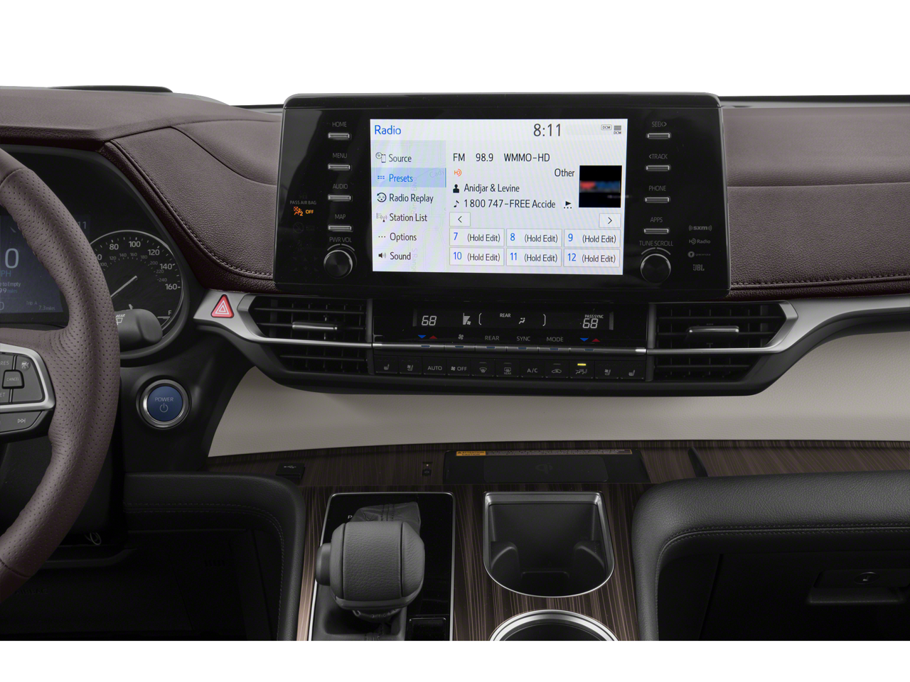 - Radio: Premium JBL Audio -inc: Dynamic Navigation w/3-year trial, 12 JBL speakers w/subwoofer and amplifier, 9" touchscreen, USB media port, 6 USB charge ports, hands-free phone capability and music streaming via Bluetooth® wireless technology, Android Auto, Apple CarPlay, Amazon Alexa compatibility, SiriusXM w/3-month All Access trial, Safety Connect w/1-year trial, Wi-Fi Connect w/up to 2 GB within 3-month trial, Service Connect w/10-year trial and Destination Assist w/1-year trial See toyota.com/audio-multimedia for details. See toyota.com/connect-services for details.