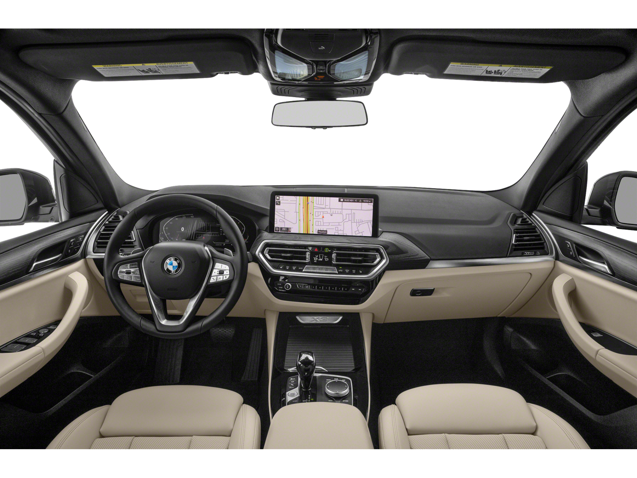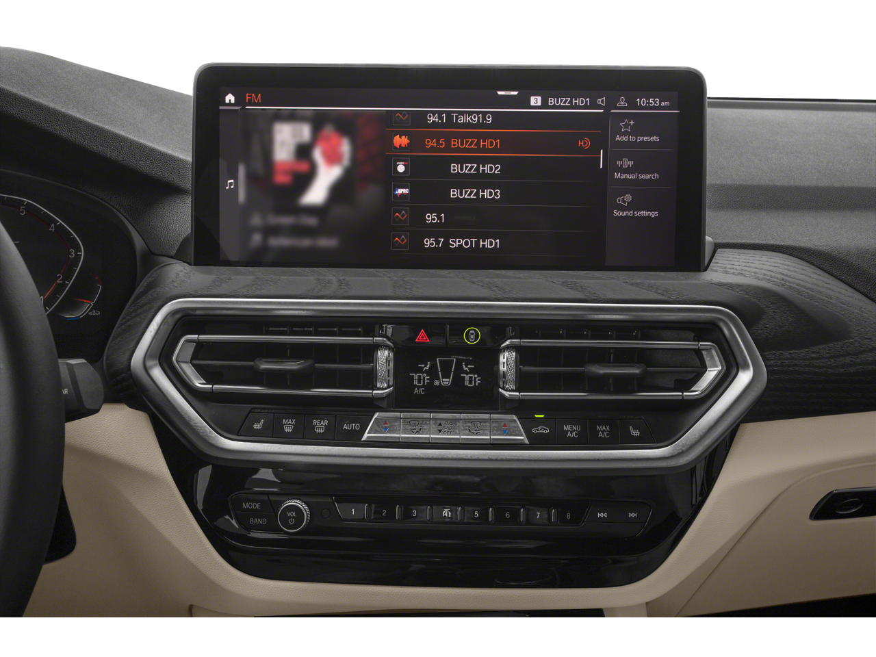 This 2022 BMW X3 xDrive30i in Alpine White comes with the following features: 2.0L I4 TwinPower Turbo 8-Speed Automatic Sport AWD Connected Package Pro, M Sport Package (337), M Sport Package 2 (Aerodynamic Kit, M Steering Wheel, Roof Rails in High-Gloss Shadowline, Shadowline Exterior Trim, Smoke Grey Aluminum Rhombicle Trim, Wheels: 20 x 8.0 Fr & 20 x 9.5 Rr (Style 787M), and Without Exterior Lines Designation), Premium Package 2 (Gesture Control, Heated Front Seats, Heated Steering Wheel, Lumbar Support, and Panoramic Moonroof), 8-Speed Automatic Sport, 12 Speakers, 3.385 Axle Ratio, 4-Wheel Disc Brakes, ABS brakes, Air Conditioning, Alloy wheels, AM/FM Radio, AM/FM radio: SiriusXM with 360L, Apple CarPlay & Android Auto Compatibility, Auto High-beam Headlights, Auto-dimming door mirrors, Auto-dimming Rear-View mirror, Automatic temperature control, BMW Assist eCall, BMW TeleServices, Brake assist, Bumpers: body-color, Comfort Access Keyless Entry, ConnectedDrive Services, Delay-off headlights, Driver door bin, Driver vanity mirror, Dual front impact airbags, Dual front side impact airbags, Electronic Stability Control, Emergency communication system: BMW Assist eCall, Enhanced Bluetooth®, Exterior Parking Camera Rear, Fine Wood Open-Pored Ash Grain Trim, Four wheel independent suspension, Front & Rear Heated Seats, Front anti-roll bar, Front Bucket Seats, Front Center Armrest, Front dual zone A/C, Front reading lights, Front Ventilated Seats, Fully automatic headlights, Garage door transmitter, Genuine wood dashboard insert, Genuine wood door panel insert, Heated door mirrors, Hi-Fi Sound System, Illuminated entry, Knee airbag, Live Cockpit Pro w/Navigation, Low tire pressure warning, M Shadowline Lights, Memory seat, Navigation, Navigation System, Occupant sensing airbag, Outside temperature display, Overhead airbag, Panic alarm, Passenger door bin, Passenger vanity mirror, Perforated SensaTec Upholstery, Power door mirrors, Power driver seat, Power Front Seats, Power Liftgate, Power passenger seat, Power steering, Power windows, Radio data system, Rain sensing wipers, Rear air conditioning, Rear anti-roll bar, Rear Manual Side Window Shades, Rear reading lights, Rear seat center armrest, Rear window defroster, Rear window wiper, Remote Engine Start, Remote keyless entry, Roof rack: rails only, Security system, SiriusXM w/360L, Speed control, Speed-sensing steering, Speed-Sensitive Wipers, Split folding rear seat, Spoiler, Sport Seats, Sport steering wheel, Steering wheel mounted audio controls, Tachometer, Telescoping steering wheel, Tilt steering wheel, Traction control, Trailer Hitch, Trip computer, Turn signal indicator mirrors, Variably intermittent wipers, Wheels: 19 x 7.5 M Y-Spoke Bi-Color (Style 887M), Wheels: 19 x 7.5 Y-Spoke (Style 693), WiFi Hotspot, and Wireless Charging.