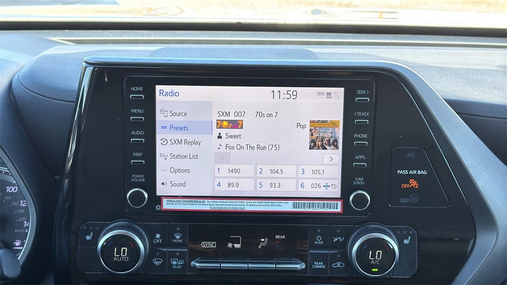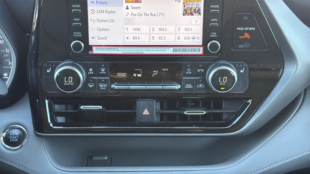 This 2022 Toyota Highlander XLE in Silver comes with the following features: 3.5L V6 DOHC 8-Speed Automatic FWD 3.003 Axle Ratio, 3rd row seats: split-bench, 4-Wheel Disc Brakes, 6 Speakers, ABS brakes, Air Conditioning, Alloy wheels, AM/FM radio: SiriusXM, Apple CarPlay/Android Auto, Auto High-beam Headlights, Auto-dimming Rear-View mirror, Automatic temperature control, Brake assist, Bumpers: body-color, Delay-off headlights, Driver door bin, Driver vanity mirror, Dual front impact airbags, Dual front side impact airbags, Electronic Stability Control, Emergency communication system: Safety Connect with 1-year trial, Exterior Parking Camera Rear, Four wheel independent suspension, Front anti-roll bar, Front Bucket Seats, Front Center Armrest, Front dual zone A/C, Front fog lights, Front reading lights, Fully automatic headlights, Garage door transmitter: HomeLink, Heated door mirrors, Heated Front Bucket Seats, Heated front seats, Illuminated entry, Knee airbag, Leather Shift Knob, Low tire pressure warning, Occupant sensing airbag, Outside temperature display, Overhead airbag, Overhead console, Panic alarm, Passenger door bin, Passenger vanity mirror, Power door mirrors, Power driver seat, Power Liftgate, Power moonroof, Power passenger seat, Power steering, Power windows, Radio: Audio Plus, Rear air conditioning, Rear anti-roll bar, Rear reading lights, Rear window defroster, Rear window wiper, Reclining 3rd row seat, Remote keyless entry, Roof rack: rails only, Security system, SofTex Seat Trim, Speed control, Speed-sensing steering, Split folding rear seat, Spoiler, Steering wheel mounted audio controls, Tachometer, Telescoping steering wheel, Tilt steering wheel, Traction control, Trip computer, Turn signal indicator mirrors, Variably intermittent wipers, and Wheels: 18 Machined-Finish Alloy.
