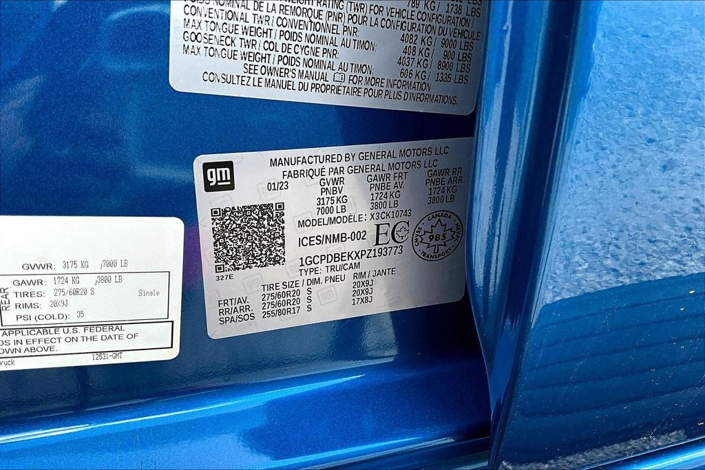 This 2023 Chevrolet Silverado 1500 Custom in Glacier Blue Metallic comes with the following features: 2.7L Turbo 8-Speed Automatic 4WD Custom Convenience Package (Electric Rear-Window Defogger, EZ Lift Power Lock & Release Tailgate, LED Cargo Area Lighting, Remote Vehicle Starter System, and Theft Deterrent System (Unauthorized Entry)), Custom Value Package, Dark Essentials Package (LPO) (Black Name Plates (LPO)), High Capacity Suspension Package, Preferred Equipment Group 1CX (10-Way Power Driver Seat w/Lumbar, 120-Volt Bed Mounted Power Outlet, 120-Volt Instrument Panel Power Outlet, 3.5 Monochromatic Display Driver Info Center, Bluetooth® For Phone, Chevrolet Connected Access Capable, Color-Keyed Carpeting Floor Covering, Compass, Deep-Tinted Glass, Dual Rear USB Ports (Charge Only), Electrical Steering Column Lock, Electronic Cruise Control, Front Frame-Mounted Black Recovery Hooks, Front Rubberized Vinyl Floor Mats, HD Rear Vision Camera, Manual Tilt Wheel Steering Column, OnStar & Chevrolet Connected Services Capable, Power Front Windows w/Driver Express Up/Down, Power Front Windows w/Passenger Express Down, Power Rear Windows w/Express Down, Rear 60/40 Folding Bench Seat (Folds Up), Rear Rubberized-Vinyl Floor Mats, Remote Keyless Entry, SiriusXM Radio, Standard Tailgate, Wi-Fi Hot Spot Capable, and Wireless Phone Projection), Trailering Package (Hitch Guidance), 8-Speed Automatic, 4WD, Jet Black Cloth, 3.42 Rear Axle Ratio, 4-Wheel Disc Brakes, 40/20/40 Front Split-Bench Seat, 6 Speakers, 6-Speaker Audio System, ABS brakes, Air Conditioning, Alloy wheels, AM/FM radio: SiriusXM, Apple CarPlay/Android Auto, Auto High-beam Headlights, Auto-Locking Rear Differential, Automatic Emergency Braking, Black Tailgate CHEVROLET Lettering (LPO), Black Work Step (LPO), Brake assist, Bumpers: body-color, Chevytec Spray-On Black Bedliner, Cloth Seat Trim, Delay-off headlights, Driver door bin, Driver vanity mirror, Dual front impact airbags, Dual front side impact airbags, Electronic Stability Control, Engine Block Heater, Following Distance Indicator, Forward Collision Alert, Front anti-roll bar, Front Black Bowtie Emblem (LPO), Front Center Armrest w/Storage, Front Pedestrian Braking, Front reading lights, Front wheel independent suspension, Fully automatic headlights, Heated door mirrors, Illuminated entry, Integrated Trailer Brake Controller, IntelliBeam Automatic High Beam On/Off, Lane Keep Assist w/Lane Departure Warning, Low tire pressure warning, Molded Black Splash Guards (LPO), Not Equipped w/Rear USB Ports, Not Equipped w/Steering Column Lock, Occupant sensing airbag, Outside temperature display, Overhead airbag, Overhead console, Panic alarm, Passenger door bin, Passenger vanity mirror, Power door mirrors, Power driver seat, Power steering, Power windows, Premium audio system: Chevrolet Infotainment 3, Premium Soft Roll-Up Tonneau Cover (LPO), Radio data system, Radio: Chevrolet Infotainment 3 System, Rear reading lights, Rear step bumper, Rear window defroster, Remote keyless entry, Security system, Speed control, Speed-sensing steering, Split folding rear seat, Tachometer, Tilt steering wheel, Traction control, Trip computer, Variably intermittent wipers, Voltmeter, Wheels: 20 x 9 Bright Silver Painted Aluminum, and Wheels: 20 x 9 High Gloss Black Painted Alum. 2023 Chevrolet Silverado 1500 Custom