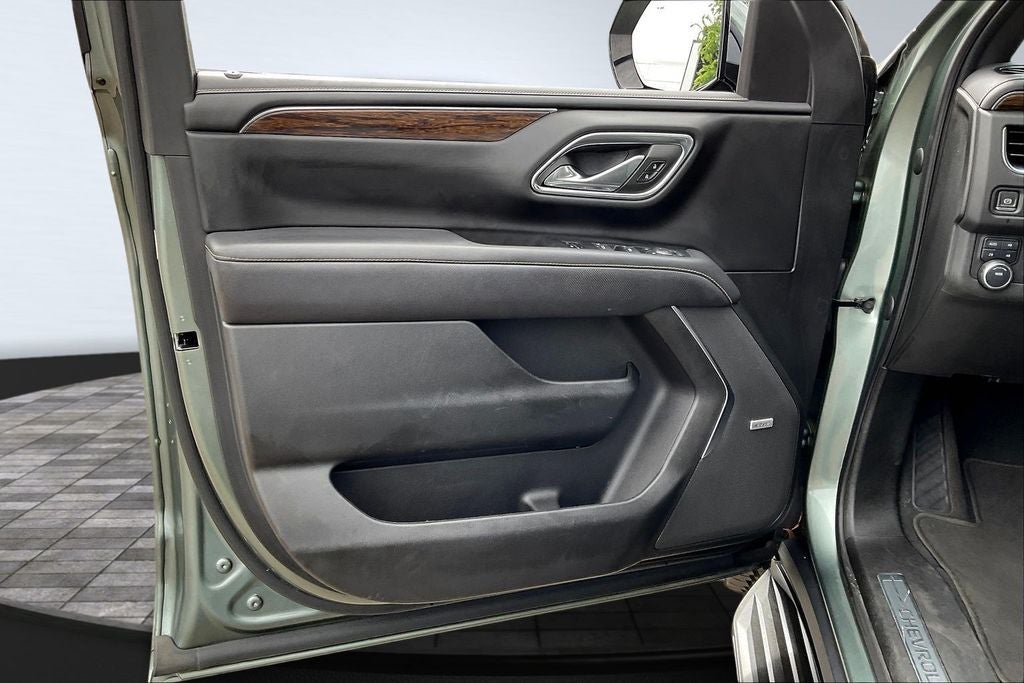 This 2023 Chevrolet Tahoe Premier in Silver Sage Metallic comes with the following features: EcoTec3 5.3L V8 10-Speed Automatic with Overdrive 4WD Preferred Equipment Group 1LZ (1st & 2nd Row Color-Keyed Carpeted Floor Mats, 2-Speed Active Electronic AutoTrac Transfer Case, 3rd Row 60/40 Power-Folding Split-Bench Seat, Auto-Dimming Inside Rear-View Mirror, Bose 10-Speaker Centerpoint Surround Audio Sys Ft, Bright Front & Rear Door Sill Plates, Chrome Door Handles w/Body-Color Strip, Chrome Mirror Caps, Color-Keyed Carpeting Floor Covering, Driver & Front Outboard Passenger Airbags, Dual Exhaust System, Enhanced Driver Information Center, Floor Console, Hands-Free Rear Power Programmable Liftgate, Heated 2nd Row Outboard Seats, Heated Steering Wheel, Hill Descent Control, Infotainment Display, Lane Change Alert w/Side Blind Zone Alert, LED Daytime Running Lamps, Memory Settings, Outside Heated Power-Adjustable Mirrors, Power Release 2nd Row Bucket Seats, Power Tilt & Telescopic Steering Column, Rear Cross Traffic Alert, Remote Start, Safety Alert Seat, SiriusXM Radio w/360L, Universal Home Remote, Wireless Charging, and Wrapped Steering Wheel), 4WD, Black Leather, 10 Speakers, 20 x 9 Polished Aluminum Wheels, 3.23 Rear Axle Ratio, 3rd row seats: split-bench, 4-Wheel Disc Brakes, ABS brakes, Adaptive suspension, Air Conditioning, Alloy wheels, AM/FM radio: SiriusXM with 360L, Apple CarPlay/Android Auto, Auto High-beam Headlights, Auto-dimming door mirrors, Auto-dimming Rear-View mirror, Auto-leveling suspension, Automatic temperature control, Brake assist, Bumpers: body-color, Compass, Delay-off headlights, Deleted 3 Years of Remote Access, Driver door bin, Driver vanity mirror, Dual front impact airbags, Dual front side impact airbags, Electronic Stability Control, Emergency communication system: OnStar and Chevrolet connected services capable, Four wheel independent suspension, Front anti-roll bar, Front Bucket Seats, Front Center Armrest, Front dual zone A/C, Front High-Back Reclining Bucket Seats, Front reading lights, Fully automatic headlights, Garage door transmitter, Heated & Ventilated Driver & Front Passenger Seats, Heated door mirrors, Heated Driver & Front Passenger Seats, Heated front seats, Heated rear seats, Heated steering wheel, Illuminated entry, Low tire pressure warning, Magnetic Ride Control Suspension, Memory seat, Navigation System, Not Equipped w/4-Way Driver & Fr Pass Pwr Lumbar, Occupant sensing airbag, Outside temperature display, Overhead airbag, Overhead console, Panic alarm, Passenger door bin, Passenger vanity mirror, Perforated Leather Seat Trim, Power door mirrors, Power driver seat, Power Liftgate, Power passenger seat, Power steering, Power windows, Premium audio system: Chevrolet Infotainment 3 Premium, Radio: Chevrolet Infotainment 3 Premium System, Rain sensing wipers, Rear air conditioning, Rear anti-roll bar, Rear reading lights, Rear window defroster, Rear window wiper, Remote keyless entry, Roof rack: rails only, Security system, Speed control, Speed-sensing steering, Split folding rear seat, Spoiler, Steering wheel memory, Steering wheel mounted audio controls, Tachometer, Telescoping steering wheel, Tilt steering wheel, Traction control, Trip computer, Turn signal indicator mirrors, Variably intermittent wipers, Ventilated front seats, and Voltmeter.