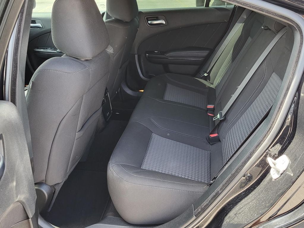 This 2023 Dodge Charger SXT in Pitch Black Clearcoat comes with the following features: 3.6L V6 24V VVT 8-Speed Automatic RWD Blacktop Package (DISC) (Black 1-Piece Performance Spoiler, Dodge Grille Badge, Gloss Black Fascia Applique, Gloss Black I/P Cluster Trim Rings, Satin Black Charger Decklid Badge, Satin Black Dodge Tail Lamp Badge, Sport Suspension, and Wheels: 20 x 8 Black Noise Painted (DISC)), Quick Order Package 2EG, Black Cloth, 1-Yr SiriusXM Guardian Trial, 2-Piece Shark Fin Antenna, 276 Watt Amplifier, 4-Wheel Disc Brakes, 4G LTE Wi-Fi Hot Spot, 6 Speakers, 8.4 Touchscreen Display, ABS brakes, Air Conditioning, Alloy wheels, AM/FM radio: SiriusXM, Anti-whiplash front head restraints, Apple CarPlay, Apple CarPlay/Android Auto, AutoStick Automatic Transmission, Brake assist, Bumpers: body-color, Compass, Delay-off headlights, Driver door bin, Driver vanity mirror, Dual front impact airbags, Dual front side impact airbags, Electronic Stability Control, Emergency communication system: SiriusXM Guardian, For Details, Visit DriveUconnect.com, Four wheel independent suspension, Front anti-roll bar, Front Bucket Seats, Front Center Armrest, Front dual zone A/C, Front License Plate Bracket, Front reading lights, Fully automatic headlights, Google Android Auto, GPS Antenna Input, HD Radio, Houndstooth Cloth Sport Seat, Illuminated entry, Integrated Center Stack Radio, Integrated Voice Command w/Bluetooth®, Knee airbag, Leather Shift Knob, Low tire pressure warning, Manufacturer's Statement of Origin, Media Hub (2 USB, AUX), Occupant sensing airbag, Outside temperature display, Overhead airbag, Overhead console, Panic alarm, ParkView Rear Back-Up Camera, Passenger door bin, Passenger vanity mirror, Power door mirrors, Power driver seat, Power steering, Power windows, Radio: Uconnect 4C w/8.4 Display, Rear anti-roll bar, Rear reading lights, Rear seat center armrest, Rear window defroster, Remote keyless entry, Speed control, Speed-Sensitive Wipers, Split folding rear seat, Steering wheel mounted audio controls, Tachometer, Telescoping steering wheel, Tilt steering wheel, Traction control, Trip computer, USB Host Flip, Variably intermittent wipers, and Wheels: 17 x 7 Painted Cast AluminuM.