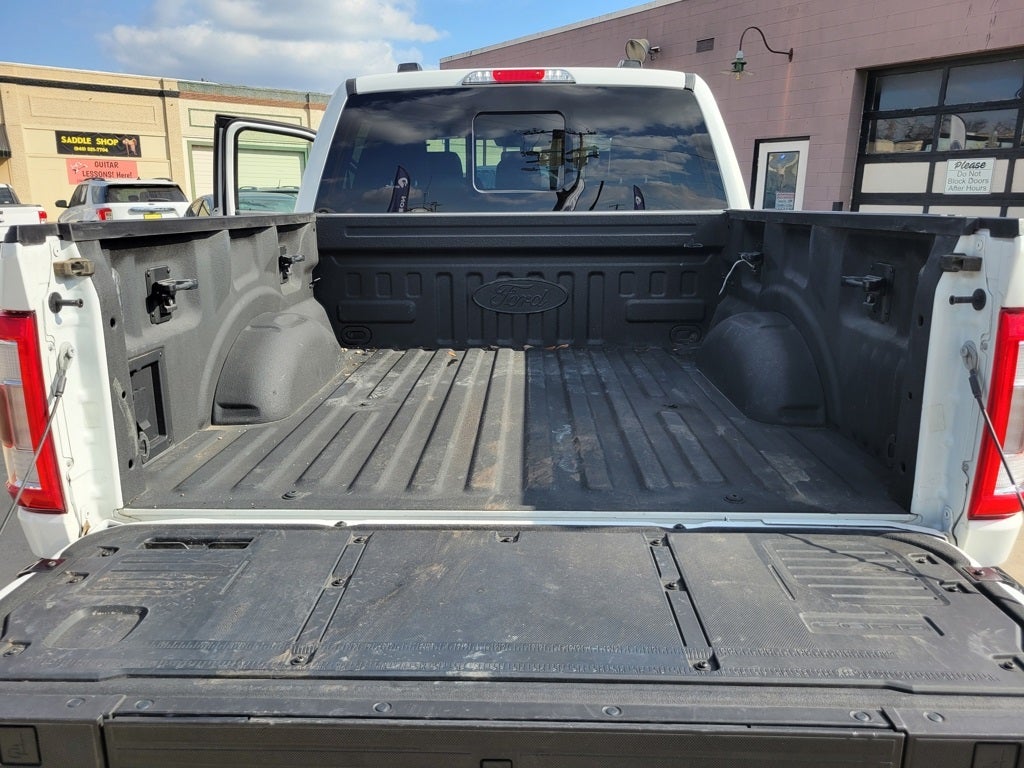 This 2023 Ford F-150 Platinum in Star White Metallic Tri-Coat comes with the following features: 3.5L V6 EcoBoost 10-Speed Automatic 4WD Bed Utility Package (BoxLink, LED Box Lighting, Power Tailgate, and Tailgate Step w/Tailgate Work Surface), Equipment Group 701A High (360 Degree Camera, Pro Trailer Backup Assist & Pro Trailer Hitch Assist, and Radio: B&O Unleashed Sound System by Bang & Olufsen), Ford BlueCruise 1.0 (Active Park Assist 2.0), FX4 Off-Road Package (4x4 FX4 Off-Road Bodyside Decal, Hill Descent Control, Monotube Rear Shocks, Off-Road Tuned Front Shock Absorbers, Rock Crawl Mode, and Tray Style Floor Liner), Trailer Tow Package (Class IV Trailer Hitch Receiver and Integrated Trailer Brake Controller), 4WD, 20 Polished Aluminum Wheels, 4-Wheel Disc Brakes, 8 Speakers, ABS brakes, Active Park Assist 2.0 Removal, Adjustable pedals, Air Conditioning, Alloy wheels, AM/FM radio: SiriusXM with 360L, Auto High-beam Headlights, Auto tilt-away steering wheel, Auto-dimming door mirrors, Auto-dimming Rear-View mirror, Automatic temperature control, Brake assist, Bumpers: body-color, Center High-Mounted Stop Lamp CHMSL Camera Removal, Compass, Delay-off headlights, Driver door bin, Driver vanity mirror, Dual front impact airbags, Dual front side impact airbags, Electronic Stability Control, Emergency communication system: SYNC 4 911 Assist, Extended Range 36 Gallon Fuel Tank, Exterior Parking Camera Rear, Front anti-roll bar, Front Bucket Seats, Front Center Armrest, Front dual zone A/C, Front fog lights, Front reading lights, Front wheel independent suspension, Fully automatic headlights, Garage door transmitter, Heated door mirrors, Heated front seats, Heated rear seats, Heated steering wheel, Illuminated entry, Inclination/Intrusion Sensor Removal, LED Sideview Mirror Spotlights, Low tire pressure warning, Memory seat, Multicontour Seats w/Active Motion Removal, Occupant sensing airbag, Outside temperature display, Overhead airbag, Overhead console, Panic alarm, Passenger door bin, Passenger vanity mirror, Pedal memory, Power door mirrors, Power driver seat, Power passenger seat, Power steering, Power windows, Radio data system, Radio: B&O Sound System by Bang & Olufsen, Rain sensing wipers, Rear reading lights, Rear seat center armrest, Rear step bumper, Rear window defroster, Remote keyless entry, Security system, Speed control, Speed-sensing steering, Split folding rear seat, Steering wheel memory, Steering wheel mounted audio controls, SYNC 4 w/Enhanced Voice Recognition, Tachometer, Telescoping steering wheel, Tilt steering wheel, Tough Bed Spray-In Bedliner, Traction control, Trip computer, Turn signal indicator mirrors, Twin Panel Moonroof, Unique Multi-Contour Leather Bucket Seats, Variably intermittent wipers, Ventilated front seats, and Voltmeter.