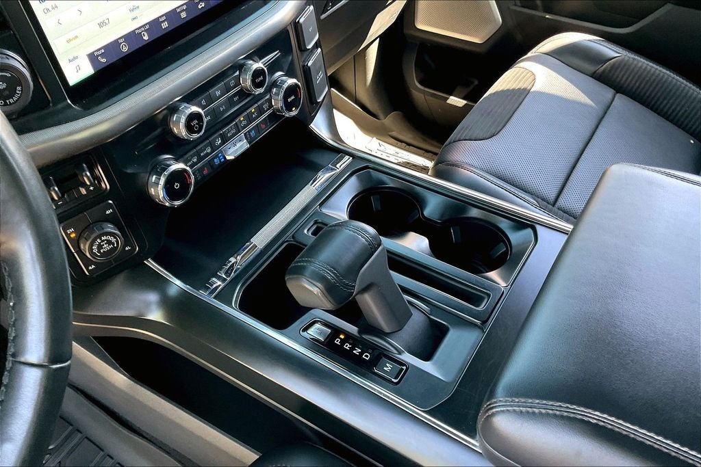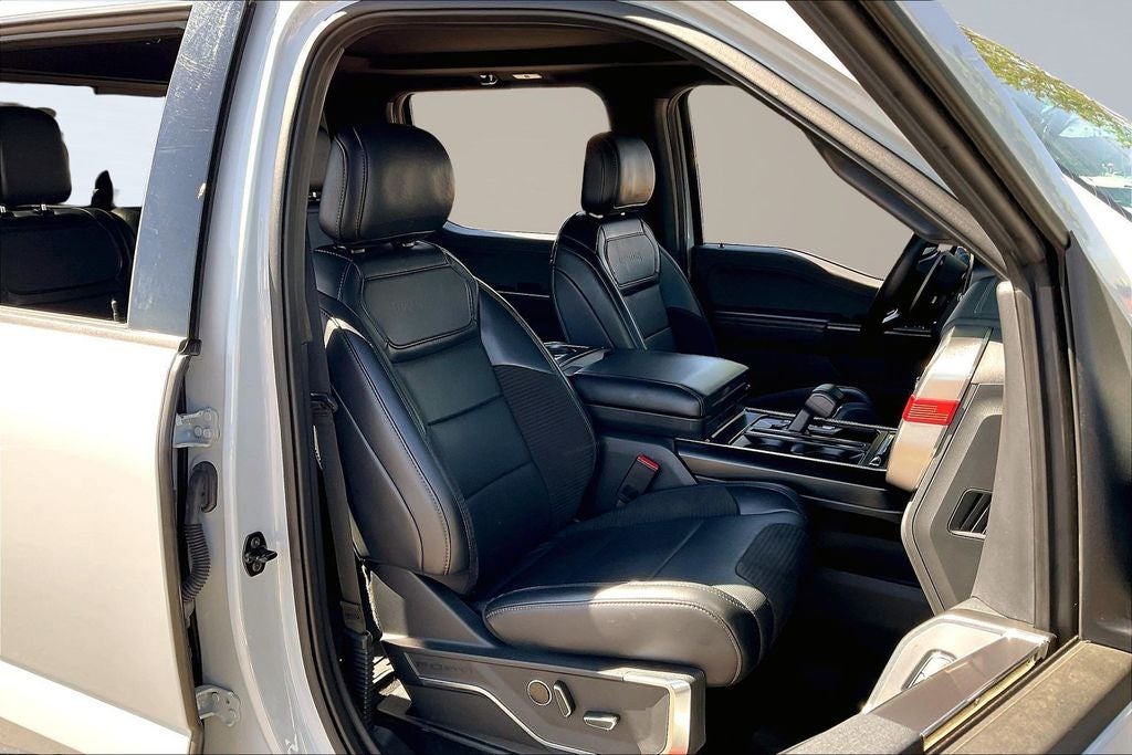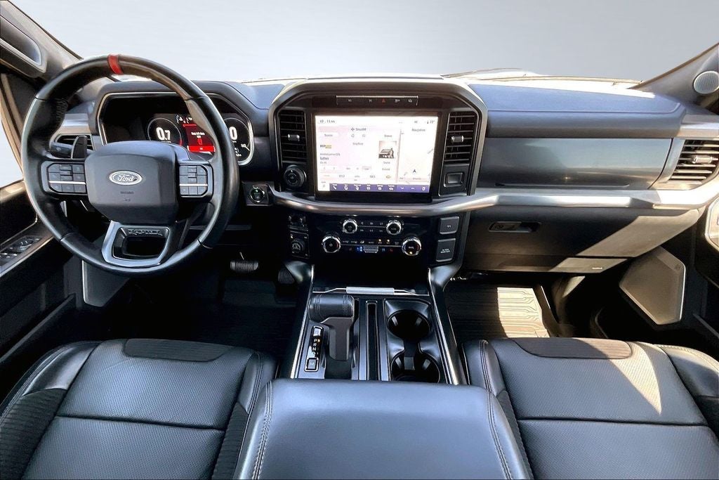 This 2023 Ford F-150 Raptor in Avalanche comes with the following features: 3.5L V6 EcoBoost 10-Speed Automatic 4WD Equipment Group 801A Standard, GVWR: 7,300 lbs Payload Package, Moonroof & Tailgate (Power Tailgate and Twin Panel Moonroof), 4WD, 17 Cast Aluminum Wheels, 18 Speakers, 4-Wheel Disc Brakes, ABS brakes, Adaptive suspension, Adjustable pedals, Air Conditioning, Alloy wheels, AM/FM radio: SiriusXM with 360L, Auto High-beam Headlights, Auto Start-Stop Removal (DISC), Auto tilt-away steering wheel, Auto-dimming door mirrors, Auto-dimming Rear-View mirror, Automatic temperature control, Brake assist, Bumpers: body-color, Compass, Delay-off headlights, Driver door bin, Driver vanity mirror, Dual front impact airbags, Dual front side impact airbags, Electronic Locking w/4.10 Axle Ratio, Electronic Stability Control, Emergency communication system, Exterior Parking Camera Rear, Front anti-roll bar, Front Bucket Seats, Front Center Armrest, Front dual zone A/C, Front fog lights, Front reading lights, Front wheel independent suspension, Fully automatic headlights, Garage door transmitter, Heated door mirrors, Heated front seats, Heated rear seats, Heated steering wheel, Illuminated entry, Inclination/Intrusion Sensor Removal, Lane Departure Warning System, Leather Trim Seats w/Heated 2nd Row, Low tire pressure warning, Memory seat, Navigation system: Connected Navigation, Occupant sensing airbag, Outside temperature display, Overhead airbag, Overhead console, Panic alarm, Passenger door bin, Passenger vanity mirror, Pedal memory, Power door mirrors, Power driver seat, Power passenger seat, Power steering, Power windows, Radio data system, Radio: B&O Unleashed Sound System by Bang & Olufsen, Rain sensing wipers, Rear reading lights, Rear step bumper, Rear window defroster, Remote keyless entry, Security system, Speed control, Speed-sensing steering, Split folding rear seat, Steering Wheel Heat Removal (DISC), Steering wheel memory, Steering wheel mounted audio controls, SYNC 4 w/Enhanced Voice Recognition, Tachometer, Telescoping steering wheel, Tilt steering wheel, Traction control, Trip computer, Turn signal indicator mirrors, Variably intermittent wipers, and Ventilated front seats.