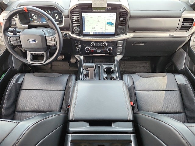 This 2023 Ford F-150 Raptor in Blue Metallic comes with the following features: 3.5L V6 EcoBoost 10-Speed Automatic 4WD Equipment Group 801A Standard, GVWR: 7,300 lbs Payload Package, Moonroof & Tailgate (Power Tailgate and Twin Panel Moonroof), 4WD, 17 Cast Aluminum Wheels, 18 Speakers, 4-Wheel Disc Brakes, ABS brakes, Adaptive suspension, Adjustable pedals, Air Conditioning, Alloy wheels, AM/FM radio: SiriusXM with 360L, Auto High-beam Headlights, Auto tilt-away steering wheel, Auto-dimming door mirrors, Auto-dimming Rear-View mirror, Automatic temperature control, Brake assist, Bumpers: body-color, Compass, Delay-off headlights, Driver door bin, Driver vanity mirror, Dual front impact airbags, Dual front side impact airbags, Electronic Locking w/4.10 Axle Ratio, Electronic Stability Control, Emergency communication system, Exterior Parking Camera Rear, Front anti-roll bar, Front Bucket Seats, Front Center Armrest, Front dual zone A/C, Front fog lights, Front License Plate Bracket, Front reading lights, Front wheel independent suspension, Fully automatic headlights, Garage door transmitter, Heated door mirrors, Heated front seats, Heated rear seats, Heated steering wheel, Illuminated entry, Inclination/Intrusion Sensor Removal, Lane Departure Warning System, Leather Trim Seats w/Heated 2nd Row, Low tire pressure warning, Memory seat, Navigation system: Connected Navigation, Occupant sensing airbag, Outside temperature display, Overhead airbag, Overhead console, Panic alarm, Partitioned Lockable Fold-Flat Storage, Passenger door bin, Passenger vanity mirror, Pedal memory, Power door mirrors, Power driver seat, Power passenger seat, Power steering, Power windows, Pro Power Onboard - 2KW, Radio data system, Radio: B&O Unleashed Sound System by Bang & Olufsen, Rain sensing wipers, Rear reading lights, Rear step bumper, Rear window defroster, Remote keyless entry, Security system, Speed control, Speed-sensing steering, Split folding rear seat, Steering Wheel Heat Removal (DISC), Steering wheel memory, Steering wheel mounted audio controls, SYNC 4 w/Enhanced Voice Recognition, Tachometer, Telescoping steering wheel, Tilt steering wheel, Traction control, Trip computer, Turn signal indicator mirrors, Variably intermittent wipers, and Ventilated front seats.