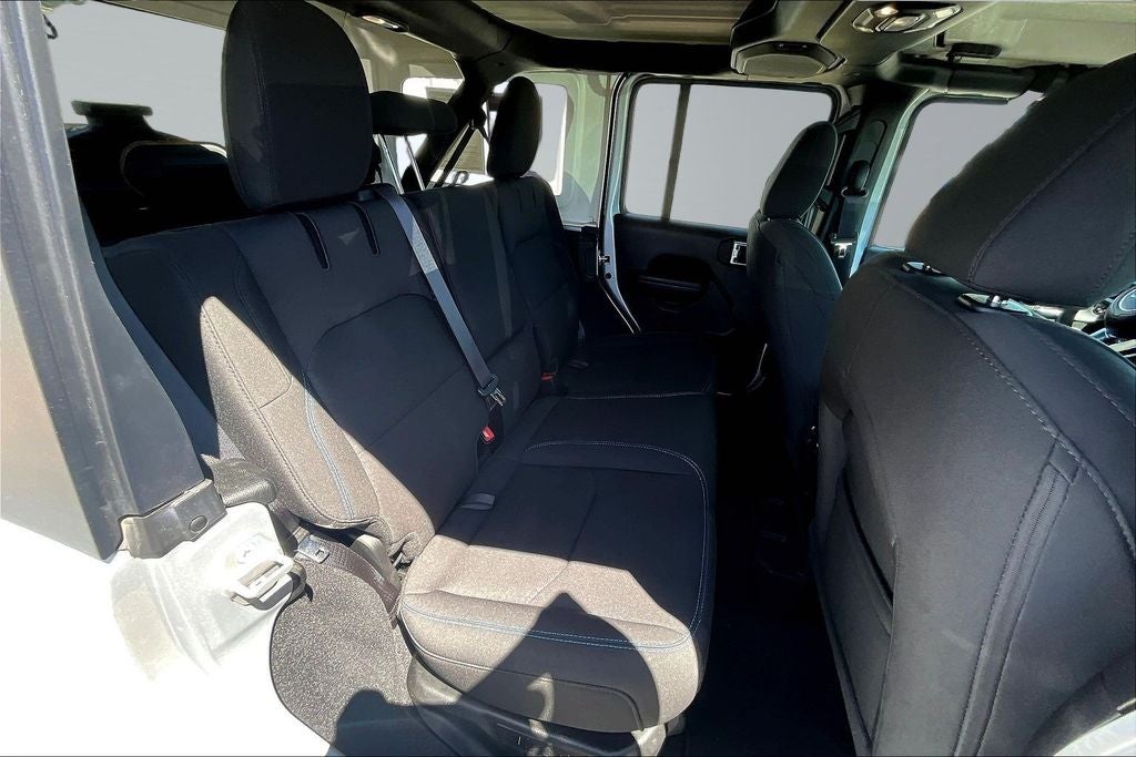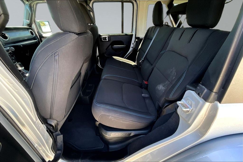 This 2023 Jeep Wrangler Rubicon 4xe in Silver Zynith Clearcoat comes with the following features: 2.0L I4 DOHC 8-Speed Automatic 4WD 2.0L I4 DOHC, ABS brakes, Alloy wheels, Compass, Electronic Stability Control, Front dual zone A/C, Heated door mirrors, Illuminated entry, Low tire pressure warning, Navigation System, ParkView Rear Back-Up Camera, Passenger door bin, Remote keyless entry, Traction control, 4-Wheel Disc Brakes, 4.10 Rear Axle Ratio, 9 Speakers, Air Conditioning, AM/FM radio: SiriusXM, Apple CarPlay/Android Auto, Auto-dimming Rear-View mirror, Automatic temperature control, Brake assist, Delay-off headlights, Driver door bin, Driver vanity mirror, Dual front impact airbags, Dual front side impact airbags, Emergency communication system: SiriusXM Guardian, Front anti-roll bar, Front Bucket Seats, Front Center Armrest w/Storage, Front fog lights, Front reading lights, Fully automatic headlights, Garage door transmitter, Integrated roll-over protection, Occupant sensing airbag, Outside temperature display, Panic alarm, Passenger vanity mirror, Performance Suspension, Power door mirrors, Power steering, Power windows, Premium Cloth Low-Back Bucket Seats, Radio data system, Radio: Uconnect 4C Nav w/8.4 Display, Rear anti-roll bar, Rear reading lights, Security system, Speed control, Split folding rear seat, Steering wheel mounted audio controls, Tachometer, Telescoping steering wheel, Tilt steering wheel, Trip computer, Variably intermittent wipers, Voltmeter, and Wheels: 17 x 7.5 Machined w/Black Pockets.
