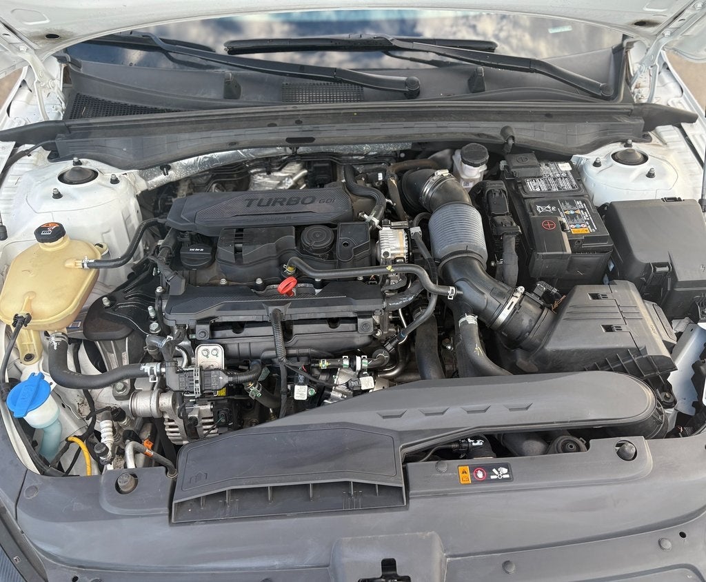 This 2023 Kia K5 LXS in Glacial White Pearl comes with the following features: 1.6L I4 DGI Turbocharged DOHC 16V LEV3-ULEV70 180hp 8-Speed Automatic FWD Air Conditioning, Auto High-beam Headlights, Cloth Seat Trim, Dual front impact airbags, Electronic Stability Control, Four wheel independent suspension, Knee airbag, Occupant sensing airbag, Overhead console, Power steering, Radio data system, Rear seat center armrest, Rear side impact airbag, Rear window defroster, Remote keyless entry, Tachometer, 4-Wheel Disc Brakes, 6 Speakers, ABS brakes, Alloy wheels, AM/FM radio, Automatic temperature control, Brake assist, Bumpers: body-color, Carpeted Floor Mats, Delay-off headlights, Driver door bin, Driver vanity mirror, Dual front side impact airbags, Front anti-roll bar, Front Bucket Seats, Front Center Armrest, Front dual zone A/C, Front reading lights, Fully automatic headlights, Heated door mirrors, Illuminated entry, Low tire pressure warning, Outside temperature display, Overhead airbag, Panic alarm, Passenger door bin, Passenger vanity mirror, Power door mirrors, Power windows, Radio: AM/FM/MP3 Audio System, Rear anti-roll bar, Security system, Speed control, Speed-sensing steering, Split folding rear seat, Steering wheel mounted audio controls, Telescoping steering wheel, Tilt steering wheel, Traction control, Trip computer, Variably intermittent wipers, and Wheels: 16 Gray Alloy.