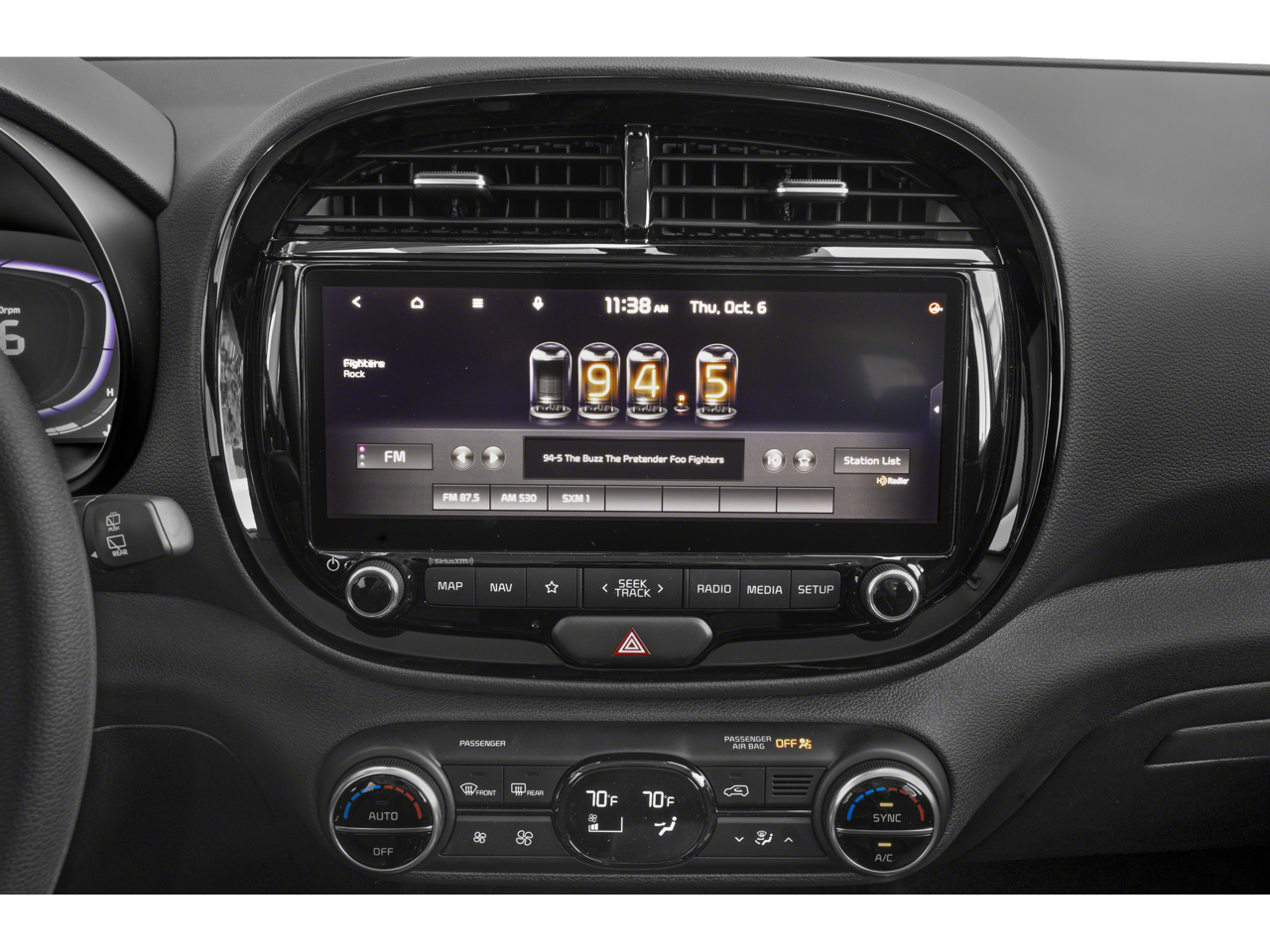 • Radio: AM/FM/MP3/HD Audio System -inc: UVO link, navigation, SiriusXM, 10.25" color touch screen, 6 speakers, support for Android Auto and Apple CarPlay, USB input, audio remote control, Bluetooth® hands-free w/voice recognition and black shark fine type antenna