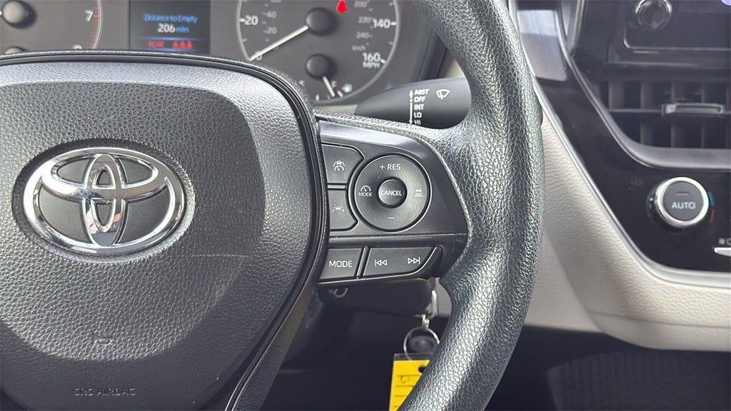 This 2023 Toyota Corolla LE in Blue comes with the following features: 2.0L I4 DOHC 16V CVT FWD 4-Wheel Disc Brakes, 6 Speakers, ABS brakes, Air Conditioning, AM/FM radio: SiriusXM, Auto High-beam Headlights, Automatic temperature control, Brake assist, Bumpers: body-color, Delay-off headlights, Driver door bin, Driver vanity mirror, Dual front impact airbags, Dual front side impact airbags, Electronic Stability Control, Emergency communication system: Safety Connect (up to 10-year trial subscription), Exterior Parking Camera Rear, Front anti-roll bar, Front Bucket Seats, Front Center Armrest, Front reading lights, Front wheel independent suspension, Fully automatic headlights, Illuminated entry, Knee airbag, Low tire pressure warning, Occupant sensing airbag, Outside temperature display, Overhead airbag, Panic alarm, Passenger door bin, Passenger vanity mirror, Power door mirrors, Power steering, Power windows, Premium Fabric Seat Trim, Radio data system, Radio: 8 Toyota Audio Multimedia, Rear anti-roll bar, Rear seat center armrest, Rear side impact airbag, Rear window defroster, Remote keyless entry, Speed control, Split folding rear seat, Steering wheel mounted audio controls, Tachometer, Telescoping steering wheel, Tilt steering wheel, Traction control, Trip computer, Variably intermittent wipers, and Wheels: 16 Wide Vent Steel.