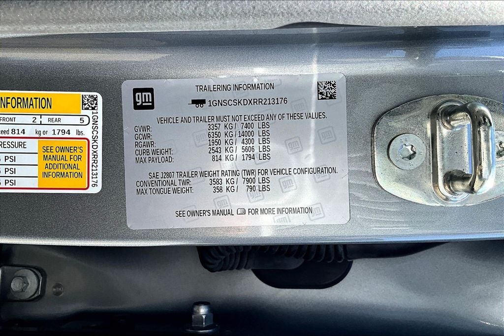 This 2024 Chevrolet Tahoe Premier in Sterling Gray Metallic comes with the following features: EcoTec3 5.3L V8 10-Speed Automatic with Overdrive RWD Preferred Equipment Group 1LZ (1st & 2nd Row Color-Keyed Carpeted Floor Mats, 3rd Row 60/40 Power-Folding Split-Bench Seat, Auto-Dimming Inside Rear-View Mirror, Bose 10-Speaker Centerpoint Surround Audio Sys Ft, Bright Front & Rear Door Sill Plates, Chrome Door Handles w/Body-Color Strip, Chrome Mirror Caps, Color-Keyed Carpeting Floor Covering, Driver & Front Outboard Passenger Airbags, Dual Exhaust System, Enhanced Driver Information Center, Floor Console, Hands-Free Rear Power Programmable Liftgate, Heated 2nd Row Outboard Seats, Heated Steering Wheel, Lane Change Alert w/Side Blind Zone Alert, LED Daytime Running Lamps, Memory Settings, Outside Heated Power-Adjustable Mirrors, Power Release 2nd Row Bucket Seats, Power Tilt & Telescopic Steering Column, Rear Cross Traffic Alert, Remote Start, Safety Alert Seat, SiriusXM w/360L, Universal Home Remote, Wireless Charging, and Wrapped Steering Wheel), Black Leather, 10 Speakers, 12-Way Power Driver & Passenger Seat Adjusters, 20 x 9 Polished Aluminum Wheels, 3.23 Rear Axle Ratio, 3rd row seats: split-bench, 4-Wheel Disc Brakes, ABS brakes, Adaptive suspension, Air Conditioning, Alloy wheels, AM/FM radio: SiriusXM with 360L, Apple CarPlay/Android Auto, Auto High-beam Headlights, Auto-dimming door mirrors, Auto-dimming Rear-View mirror, Auto-leveling suspension, Automatic temperature control, Brake assist, Bumpers: body-color, Compass, Delay-off headlights, Deleted 3 Years of OnStar Remote Access, Driver & Front Passenger Heated & Ventilated Seats, Driver door bin, Driver vanity mirror, Dual front impact airbags, Dual front side impact airbags, Electronic Stability Control, Emergency communication system: OnStar and Chevrolet connected services capable, Four wheel independent suspension, Front anti-roll bar, Front Bucket Seats, Front Center Armrest, Front dual zone A/C, Front High-Back Reclining Bucket Seats, Front reading lights, Fully automatic headlights, Garage door transmitter, Heated door mirrors, Heated Driver & Front Passenger Seats, Heated front seats, Heated rear seats, Heated steering wheel, Illuminated entry, Infotainment Display, Low tire pressure warning, Magnetic Ride Control Suspension, Memory seat, Navigation System, Occupant sensing airbag, Outside temperature display, Overhead airbag, Overhead console, Panic alarm, Passenger door bin, Passenger vanity mirror, Perforated Leather Seat Trim, Power door mirrors, Power driver seat, Power Liftgate, Power passenger seat, Power steering, Power windows, Premium audio system: Chevrolet Infotainment 3 Premium, Radio: Chevrolet Infotainment 3 Premium System, Rain sensing wipers, Rear air conditioning, Rear anti-roll bar, Rear reading lights, Rear window defroster, Rear window wiper, Remote keyless entry, Roof rack: xxxxxx, Security system, Speed control, Speed-sensing steering, Split folding rear seat, Spoiler, Steering wheel memory, Steering wheel mounted audio controls, Tachometer, Telescoping steering wheel, Tilt steering wheel, Traction control, Trip computer, Turn signal indicator mirrors, Variably intermittent wipers, Ventilated front seats, and Voltmeter.