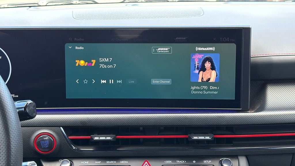 - Radio: AM/FM/HD/SiriusXM/Navigation -inc: 12.3" high-resolution touchscreen, Bose premium audio w/12 speakers (1 center channel, 2 dash, 2 front tweeters, 4 door mounted, 2 rear mounted speakers plus 1 rear mounted subwoofer), dynamic voice recognition, smartphone integration, Bluetooth®, Over-The-Air updates, USB connectivity, Blue Link connected car, Android Auto/Apple CarPlay capability (wireless and wired), HERE HD traffic and diversity antenna (navigation and premium audio)