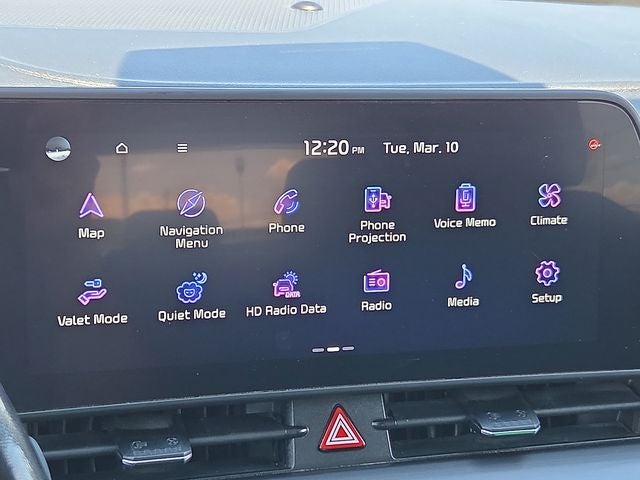 - Radio: AM/FM/HD Audio System -inc: 12.3" touchscreen w/navigation, 6 speakers, Apple Carplay and Android Auto, Kia Connect, voice recognition, WiFi, map OTA, satellite radio, steering wheel mounted audio controls and Bluetooth® phone and streaming audio