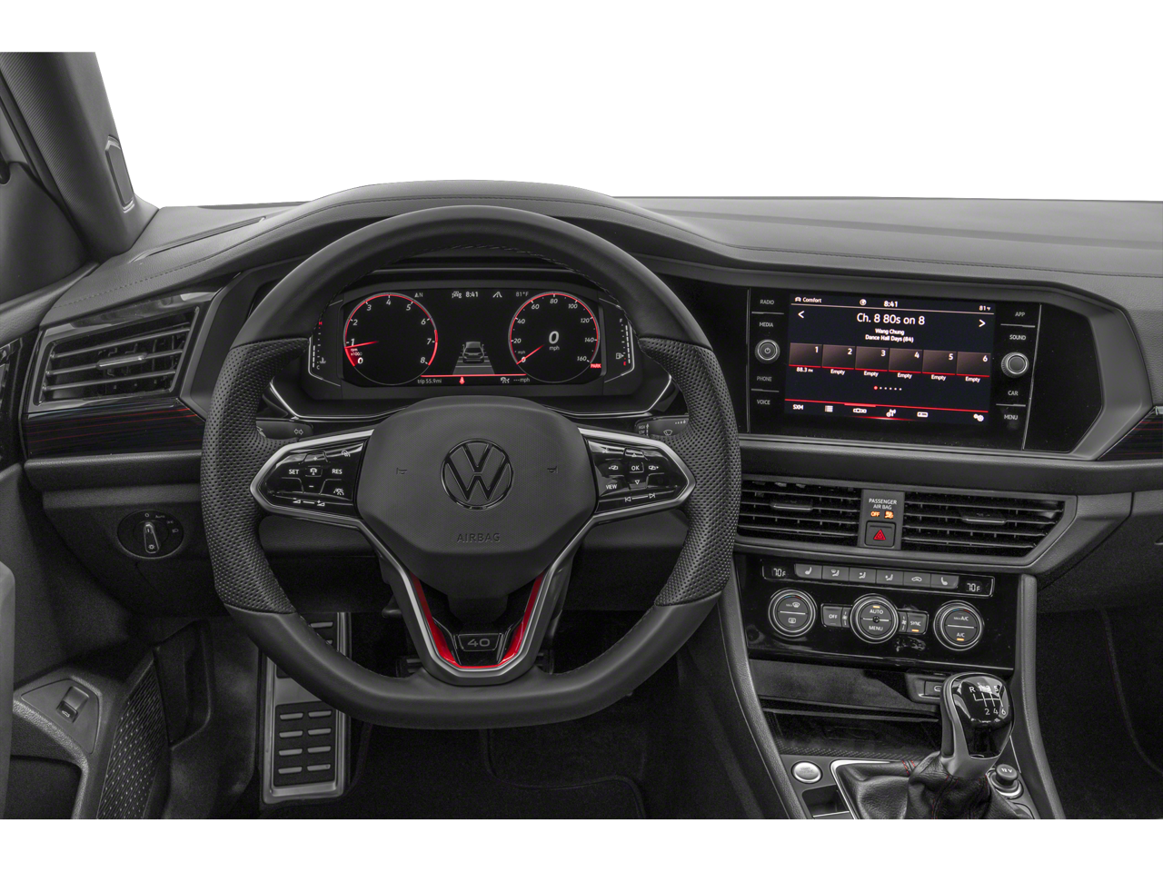 This 2024 Volkswagen Jetta GLI 40TH ANNIVERSARY in Blue Metallic comes with the following features: 2.0L TSI DOHC 7-Speed DSG Automatic with Tiptronic FWD ABS brakes, Active Cruise Control, Alloy wheels, Electronic Stability Control, Front dual zone A/C, Heated door mirrors, Heated Front Seats, Heated front seats, Illuminated entry, Low tire pressure warning, Remote keyless entry, Traction control, 4-Wheel Disc Brakes, 6 Speakers, Active Blind Spot Monitor, Adaptive suspension, Air Conditioning, AM/FM radio: SiriusXM with 360L, Auto High-beam Headlights, Auto-dimming Rear-View mirror, Automatic temperature control, Brake assist, Bumpers: body-color, Cloth Seating Surfaces, Delay-off headlights, Driver door bin, Driver vanity mirror, Dual front impact airbags, Dual front side impact airbags, Emergency communication system: VW Car-Net Safe & Secure 5-year, Exterior Parking Camera Rear, Four wheel independent suspension, Front anti-roll bar, Front Bucket Seats, Front Center Armrest, Front reading lights, Fully automatic headlights, Leather Shift Knob, Leather steering wheel, Occupant sensing airbag, Outside temperature display, Overhead airbag, Panic alarm, Passenger door bin, Passenger vanity mirror, Power door mirrors, Power steering, Power windows, Radio data system, Radio: MIB3 Composition Media w/8 Touchscreen, Rain sensing wipers, Rear anti-roll bar, Rear reading lights, Rear seat center armrest, Rear window defroster, Security system, Speed control, Speed-sensing steering, Split folding rear seat, Spoiler, Sport steering wheel, Steering wheel mounted audio controls, Tachometer, Telescoping steering wheel, Tilt steering wheel, Trip computer, Turn signal indicator mirrors, Variably intermittent wipers, and Wheels: 18 Black Painted Alloy.