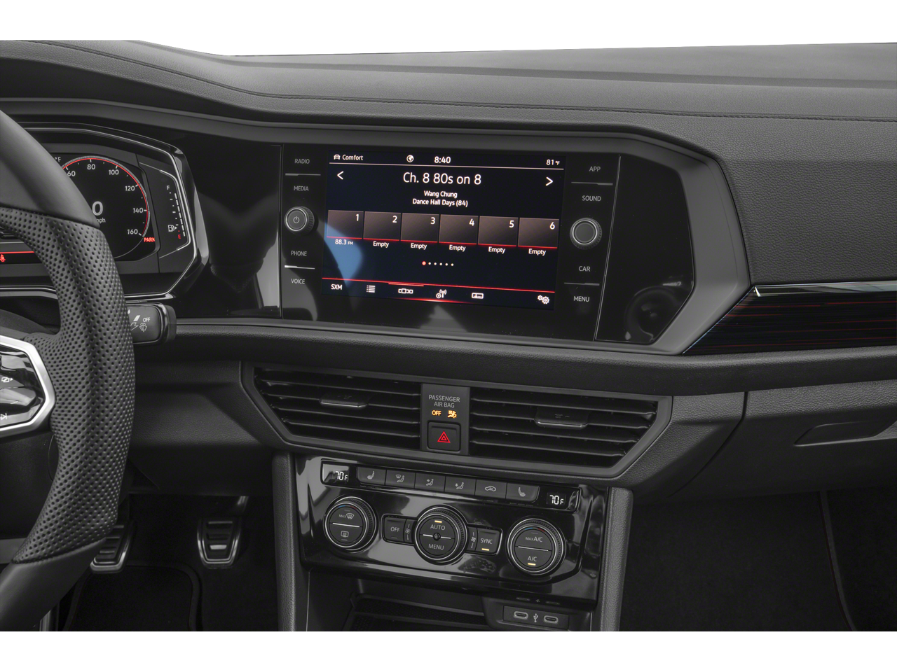 - Radio: MIB3 Composition Media w/8" Touchscreen -inc: AM/FM/HD Radio and WMA/MP3/FLAC player w/USB-C, voice control, Bluetooth® connectivity for compatible devices, SiriusXM w/360L (w/3-month free trial subscription; 360L services require acceptance of Car-Net terms), 6-speaker sound system, capability for in-vehicle 4G LTE enabled wi-fi (cellular data plan required; includes limited trial), capability for VW Car-Net services (capabilities for certain services vary; requires enrollment or subscription), App-Connect smartphone integration (w/Apple CarPlay, Android Auto and MirrorLink) via USB, wireless App-Connect smartphone integration (for compatible devices) w/multi-phone pairing capability, 45W fast charging (for compatible mobile phones and accessories) via USB and Qi wireless inductive charger (for compatible mobile phones & accessories)