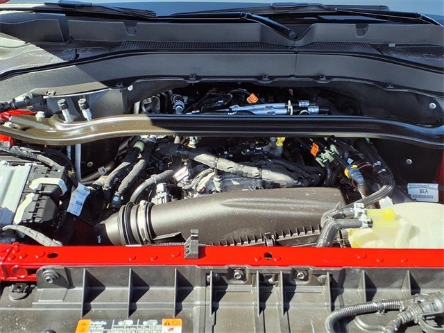 This 2025 Ford Explorer ST-Line in Red Metallic comes with the following features: 2.3L EcoBoost I-4 10-Speed Automatic 4WD Equipment Group 300A Standard Package, 10 Speakers, 2nd Row Captain's Chairs w/E-Z Entry & Armrest, 3.58 Non-Limited Slip Rear Axle, 3rd row seats: bench, 4-Wheel Disc Brakes, ABS brakes, Air Conditioning, Alloy wheels, AM/FM radio: SiriusXM with 360L, Apple CarPlay/Android Auto, Auto High-beam Headlights, Automatic temperature control, Brake assist, Bumpers: body-color, Compass, Delay-off headlights, Driver door bin, Driver vanity mirror, Dual front impact airbags, Dual front side impact airbags, Electronic Stability Control, Emergency communication system: 911 Assist, Engine Block Heater, Exterior Parking Camera Rear, Four wheel independent suspension, Front anti-roll bar, Front Bucket Seats, Front Center Armrest, Front dual zone A/C, Front fog lights, Front reading lights, Fully automatic headlights, Garage door transmitter, Heated door mirrors, Heated front seats, Heated steering wheel, Heated Unique Cloth Captain's Chairs, Illuminated entry, Internet access capable: FordPass Connect 5G, Knee airbag, Leather steering wheel, Low tire pressure warning, Navigation System, Occupant sensing airbag, Outside temperature display, Overhead airbag, Overhead console, Panic alarm, Passenger door bin, Passenger vanity mirror, Power door mirrors, Power driver seat, Power Liftgate, Power passenger seat, Power steering, Power windows, Radio: B&O Sound System by Bang & Olufsen, Rear air conditioning, Rear anti-roll bar, Rear reading lights, Rear window defroster, Rear window wiper, Remote keyless entry, Security system, Speed control, Speed-sensing steering, Speed-Sensitive Wipers, Split folding rear seat, Spoiler, Steering wheel mounted audio controls, Tachometer, Telescoping steering wheel, Tilt steering wheel, Traction control, Trip computer, Variably intermittent wipers, and Wheels: 20 Ebony-Painted Machined Aluminum.