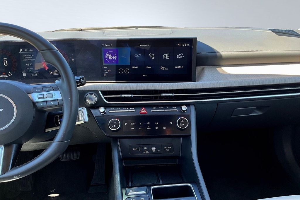 This 2025 Hyundai Sonata Hybrid SEL in Aero Silver comes with the following features: I4 6-Speed Automatic with Shiftronic FWD Option Group 01, I4, 17 x 7.0J Aluminum Alloy Wheels, 4-Wheel Disc Brakes, 6 Speakers, ABS brakes, Air Conditioning, Alloy wheels, AM/FM radio: SiriusXM, Apple CarPlay & Android Auto, Auto High-beam Headlights, Automatic temperature control, Brake assist, Bumpers: body-color, Cloth Seating Surfaces, Delay-off headlights, Driver door bin, Driver vanity mirror, Dual front impact airbags, Dual front side impact airbags, Electronic Stability Control, Emergency communication system: Bluelink+, Four wheel independent suspension, Front anti-roll bar, Front Bucket Seats, Front Center Armrest, Front dual zone A/C, Front reading lights, Fully automatic headlights, Heated door mirrors, Heated Front Bucket Seats, Heated front seats, Illuminated entry, Knee airbag, Lane Departure Warning System, Leather steering wheel, Low tire pressure warning, Occupant sensing airbag, Outside temperature display, Overhead airbag, Overhead console, Panic alarm, Passenger door bin, Passenger vanity mirror, Power door mirrors, Power driver seat, Power passenger seat, Power steering, Power windows, Radio data system, Radio: AM/FM/HD/SiriusXM, Rear anti-roll bar, Rear seat center armrest, Rear side impact airbag, Rear window defroster, Remote keyless entry, Security system, Speed control, Speed-sensing steering, Speed-Sensitive Wipers, Split folding rear seat, Spoiler, Steering wheel mounted audio controls, Tachometer, Telescoping steering wheel, Tilt steering wheel, Traction control, Trip computer, and Variably intermittent wipers.