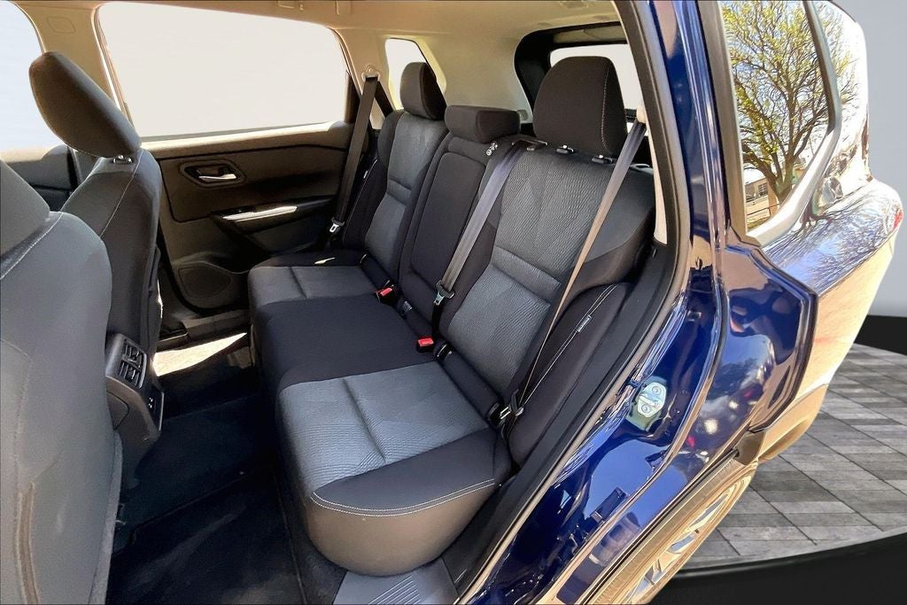 This 2025 Nissan Rogue SV in Deep Ocean Blue Pearl comes with the following features: 1.5L DOHC CVT with Xtronic FWD 4-Wheel Disc Brakes, 6 Speakers, ABS brakes, Air Conditioning, Alloy wheels, AM/FM radio: SiriusXM, Android Auto and Apple CarPlay, Auto High-beam Headlights, Automatic temperature control, Brake assist, Bumpers: body-color, Cloth Seat Trim with Patterned Inserts, Delay-off headlights, Driver door bin, Driver vanity mirror, Dual front impact airbags, Dual front side impact airbags, Electronic Stability Control, Emergency communication system: NissanConnect Services, First Aid Kit, Floor Mats with 1-Piece Cargo Area Protector, Four wheel independent suspension, Front anti-roll bar, Front Bucket Seats, Front Bucket Seats with 8-Way Power Driver Seat, Front Center Armrest, Front dual zone A/C, Front reading lights, Fully automatic headlights, Heated door mirrors, Illuminated entry, Knee airbag, Low tire pressure warning, Occupant sensing airbag, Outside temperature display, Overhead airbag, Overhead console, Panic alarm, Passenger door bin, Passenger vanity mirror, Power door mirrors, Power driver seat, Power Liftgate, Power steering, Power windows, Radio data system, Radio: NissanConnect with 6 Speakers, Rear anti-roll bar, Rear seat center armrest, Rear side impact airbag, Rear window defroster, Rear window wiper, Remote keyless entry, Speed control, Speed-sensing steering, Speed-Sensitive Wipers, Split folding rear seat, Spoiler, Steering wheel mounted audio controls, Tachometer, Telescoping steering wheel, Tilt steering wheel, Traction control, Trip computer, Variably intermittent wipers, and Wheels: 18 Dark Painted Machine Finished Alloy.