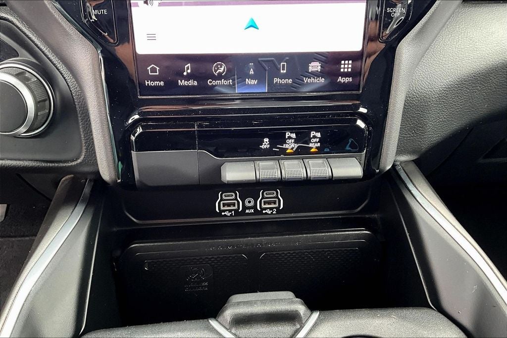 This 2025 Ram 1500 Big Horn/Lone Star in Billet Silver Metallic Clearcoat comes with the following features: 3.0L I6 8-Speed Automatic 4WD Big Horn Level 2 Equipment Group (115V Auxiliary Power Outlet, 115V Auxiliary Rear Power Outlet, 12 Touchscreen Display, 2nd Row In Floor Storage Bins, 400W Inverter, 4G LTE Wi-Fi Hot Spot, 9 Amplified Speakers w/Subwoofer, Air Conditioning ATC w/Dual Zone Control, Apple CarPlay, Auto Power-Folding Mirrors, Auto-Dimming Exterior Driver Mirror, Auto-Dimming Rear-View Mirror, Black Exterior Mirrors, Black Premium Power Mirrors, Cluster 7.0 TFT Color Display, Configurable Drive Mode, Connected Travel & Traffic Services, Connectivity - US/Canada, Convex Wide-Angle Exterior Mirror Insert, Exterior Mirrors Courtesy Lamps, Exterior Mirrors w/Heating Element, Exterior Mirrors w/Supplemental Signals, Glove Box Lamp, Google Android Auto, GPS Antenna Input, GPS Navigation, HD Radio, Heated Front Seats, Heated Steering Wheel, Integrated Voice Command w/Bluetooth®, Leather Wrapped Steering Wheel, LED Dome Lamp w/On/Off Switch, LED Footwell Lighting, Media Hub w/2 Charge Only USBs, Overhead LED Lamps, Power 2-Way Driver Lumbar Adjust, Power Adjust 8-Way Driver Seat, Power Adjustable Pedals, Premium Overhead Console, Radio: Uconnect 5 Nav w/12.0 Display, Rear Power Sliding Window, Rear Window Defroster, Remote Tailgate Release, Security Alarm, SiriusXM w/360L, Steering Wheel Mounted Audio Controls, Sun Visors w/Illuminated Vanity Mirrors, Universal Garage Door Opener, and USB Host Flip), Quick Order Package 21Z Big Horn, 3 Rear Seat Head Restraints, 4 Way Front Headrests, 4-Wheel Disc Brakes, 6 Speakers, ABS brakes, Air Conditioning, Alloy wheels, AM/FM radio, Apple CarPlay/Android Auto, Auto High-beam Headlights, Brake assist, Bumpers: chrome, Cloth Bench Seat, Compass, Delay-off headlights, Driver door bin, Dual front impact airbags, Dual front side impact airbags, Electronic Stability Control, Front anti-roll bar, Front Center Armrest w/Storage, Front fog lights, Front License Plate Bracket, Front reading lights, Front Seat Back Map Pockets, Front wheel independent suspension, Fully automatic headlights, Heated door mirrors, Illuminated entry, Low tire pressure warning, Manual Adjust 4-Way Front Passenger Seat, Manual Folding Exterior Mirrors, Manufacturer's Statement of Origin, Occupant sensing airbag, Outside temperature display, Overhead airbag, Overhead console, Panic alarm, ParkView Rear Back-Up Camera, Passenger door bin, Passenger vanity mirror, Power door mirrors, Power steering, Power windows, Radio data system, Radio: Uconnect 5 W w/8.4 Display, RAM Grille Badge - Chrome, Rear 60/40 Folding Seat, Rear anti-roll bar, Rear seat center armrest, Rear step bumper, Remote keyless entry, Speed control, Split folding rear seat, Supplier Part Tracking (J-1), Tachometer, Telescoping steering wheel, Tilt steering wheel, Traction control, Trip computer, Variably intermittent wipers, Voltmeter, and Wheels: 18 x 8 Cast-Aluminum Painted.