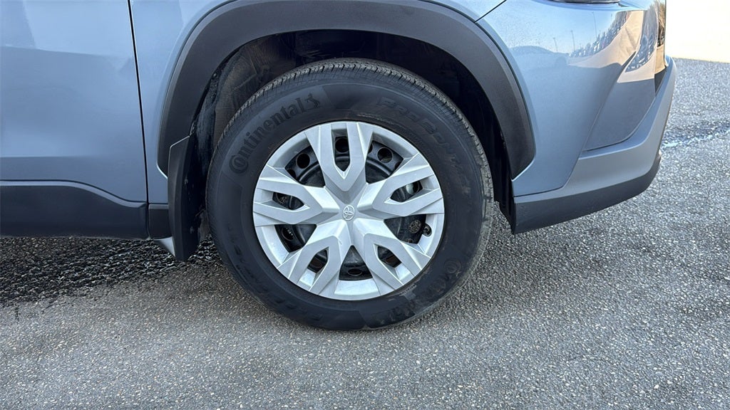 This 2025 Toyota Corolla Cross L in Blue comes with the following features: 2.0L I4 PDI DOHC 16V LEV3-SULEV30 169hp CVT FWD 4-Wheel Disc Brakes, 6 Speakers, ABS brakes, Air Conditioning, AM/FM radio: SiriusXM, Auto High-beam Headlights, Brake assist, Bumpers: body-color, Delay-off headlights, Driver door bin, Driver vanity mirror, Dual front impact airbags, Dual front side impact airbags, Electronic Stability Control, Emergency communication system: Safety Connect (10-year trial), Exterior Parking Camera Rear, Fabric Seat Trim, Front anti-roll bar, Front Bucket Seats, Front Center Armrest, Front reading lights, Front wheel independent suspension, Heated door mirrors, Illuminated entry, Knee airbag, Low tire pressure warning, Occupant sensing airbag, Outside temperature display, Overhead airbag, Panic alarm, Passenger door bin, Passenger vanity mirror, Power door mirrors, Power steering, Power windows, Radio data system, Radio: 8 Toyota Audio Multimedia with 6 Speakers, Rear anti-roll bar, Rear side impact airbag, Rear window defroster, Remote keyless entry, Speed control, Split folding rear seat, Spoiler, Steering wheel mounted audio controls, Tachometer, Telescoping steering wheel, Tilt steering wheel, Traction control, Trip computer, and Wheels: 17 Steel with Silver Covers.