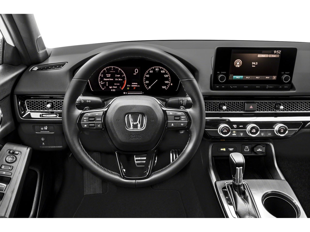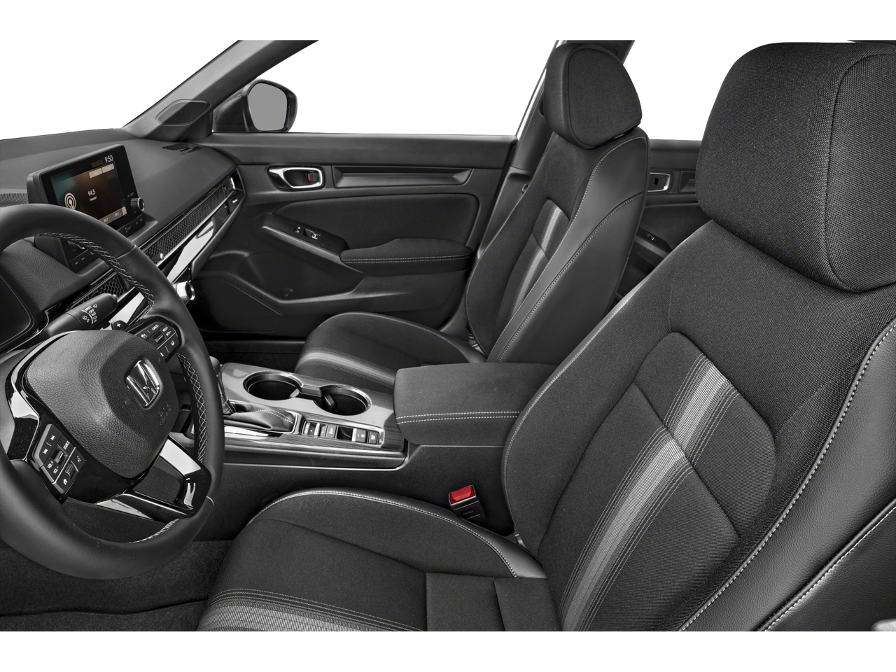This 2024 Honda Civic Sport in Platinum White Pearl comes with the following features: 2.0L I4 DOHC 16V i-VTEC CVT FWD Black Artificial Leather, 4-Wheel Disc Brakes, 8 Speakers, ABS brakes, Adaptive Cruise Control: Adaptive Cruise Control (ACC) with Low-Speed Follow, Air Conditioning, Alloy wheels, AM/FM radio, Apple CarPlay/Android Auto, Auto High-beam Headlights, Automatic temperature control, Brake assist, Bumpers: body-color, Cloth/Leatherette Seating Surfaces, Delay-off headlights, Driver door bin, Driver vanity mirror, Dual front impact airbags, Dual front side impact airbags, Electronic Stability Control, Emergency communication system: HondaLink, Exterior Parking Camera Rear, Four wheel independent suspension, Front anti-roll bar, Front Bucket Seats, Front Center Armrest, Front reading lights, Fully automatic headlights, Illuminated entry, Knee airbag, Leather Shift Knob, Leather steering wheel, Low tire pressure warning, Occupant sensing airbag, Outside temperature display, Overhead airbag, Panic alarm, Passenger door bin, Passenger vanity mirror, Power door mirrors, Power steering, Power windows, Radio data system, Radio: 180-Watt Audio System, Rear anti-roll bar, Rear side impact airbag, Rear window defroster, Remote keyless entry, Security system, Speed control, Speed-sensing steering, Steering wheel mounted audio controls, Tachometer, Telescoping steering wheel, Tilt steering wheel, Traction control, Trip computer, and Wheels: 18 Gloss Black Alloy.