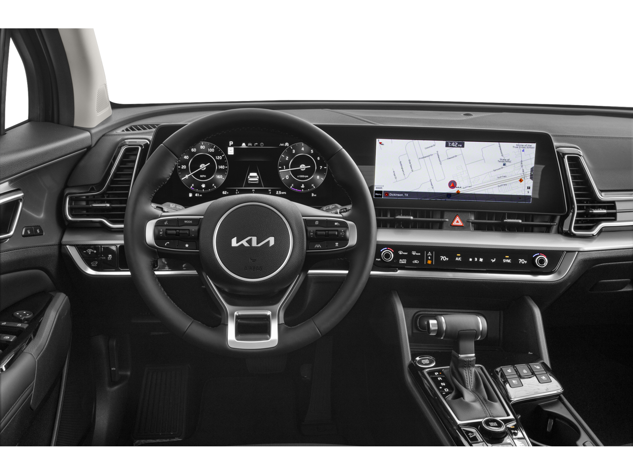 This 2024 Kia Sportage SX-Prestige in Gravity Gray comes with the following features: I4 8-Speed Automatic FWD Carmine Red Interior Color Package, 4-Wheel Disc Brakes, 8 Speakers, ABS brakes, Air Conditioning, Alloy wheels, AM/FM radio: SiriusXM, Apple CarPlay & Android Auto, Auto High-beam Headlights, Automatic temperature control, Axle Ratio: 3.648, Brake assist, Bumpers: body-color, Cargo Mat, Carpeted Floor Mats, Compass, Cross Bars, Delay-off headlights, Driver door bin, Driver vanity mirror, Dual front impact airbags, Dual front side impact airbags, Electronic Stability Control, Emergency communication system, Four wheel independent suspension, Front anti-roll bar, Front Bucket Seats, Front Center Armrest, Front dual zone A/C, Front fog lights, Front reading lights, Fully automatic headlights, harman/kardon® Speakers, Heated & Ventilated Front Bucket Seats, Heated door mirrors, Heated front seats, Heated steering wheel, Illuminated entry, Interior Lighting, Leather Shift Knob, Leather steering wheel, Low tire pressure warning, Memory seat, Navigation System, Occupant sensing airbag, Outside temperature display, Overhead airbag, Overhead console, Panic alarm, Passenger door bin, Passenger vanity mirror, Power door mirrors, Power driver seat, Power Liftgate, Power moonroof, Power passenger seat, Power steering, Power windows, Premium Leatherette Seat Trim, Radio: AM/FM/HD Audio System, Rain sensing wipers, Rear anti-roll bar, Rear reading lights, Rear seat center armrest, Rear side impact airbag, Rear window defroster, Rear window wiper, Remote keyless entry, Security system, Speed control, Speed-sensing steering, Split folding rear seat, Spoiler, Steering wheel mounted audio controls, Tachometer, Telescoping steering wheel, Tilt steering wheel, Tow Hitch w/Harness, Traction control, Trip computer, Turn signal indicator mirrors, Variably intermittent wipers, Ventilated front seats, Wheel Locks, and Wheels: 19 Gloss Black Alloy.