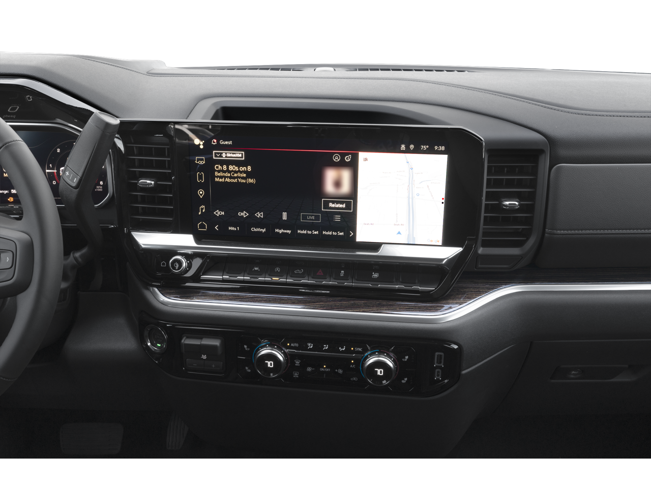 This 2025 GMC Sierra 1500 SLT in Titanium Rush Metallic comes with the following features: EcoTec3 5.3L V8 10-Speed Automatic RWD Preferred Equipment Group 4SA (120-Volt Bed Mounted Power Outlet, 120-Volt Interior Power Outlet, 170 Amp Alternator, 2 Charge/Data USB Ports, 2 Type-C Charge-Only Rear USB Ports, 6-Speaker Audio System Feature, Auto-Locking Rear Differential, Auxiliary External Transmission Oil Cooler, Chrome Header & Chrome Grille Insert Bars, Color-Keyed Carpeting Floor Covering, Deep-Tinted Glass, Electric Rear-Window Defogger, Front Frame-Mounted Black Recovery Hooks, Front Rain-Sensing Wipers, HD Rear Vision Camera, Integrated Trailer Brake Controller, Keyless Open & Start, LED Cargo Area Lighting, Manual Tilt-Wheel & Telescoping Steering Column, OnStar Services Capable, Perimeter Lighting, Power Door Locks, Power Front Passenger Windows w/Express Up/Down, Power Front Windows w/Driver Express Up/Down, Power Rear Windows w/Express Down, Push Button Start, Rear Wheelhouse Liners, Remote Vehicle Starter System, SiriusXM w/360L Trial Subscription, Steering Wheel Audio Controls, Theft Deterrent System (Unauthorized Entry), and Wi-Fi Hotspot Capable), Standard Suspension Package, Trailering Package (Hitch Guidance), 10-Speed Automatic, Black Leather, 10-Way Power Driver Seat Adjuster w/Lumbar, 10-Way Power Passenger Seat Adjuster w/Lumbar, 3.23 Rear Axle Ratio, 4-Wheel Disc Brakes, 6 Speakers, ABS brakes, Air Conditioning, Alloy wheels, AM/FM radio: SiriusXM with 360L, Apple CarPlay/Android Auto, Auto High-beam Headlights, Auto-dimming door mirrors, Auto-dimming Rear-View mirror, Automatic Emergency Braking, Automatic temperature control, Brake assist, Buckle to Drive, Bumpers: chrome, Compass, Delay-off headlights, Driver door bin, Driver Memory, Driver vanity mirror, Dual front impact airbags, Dual front side impact airbags, Electronic Stability Control, Emergency communication system: OnStar, Following Distance Indicator, Forward Collision Alert, Front 40/20/40 Split-Bench Seat, Front anti-roll bar, Front Center Armrest w/Storage, Front dual zone A/C, Front fog lights, Front Pedestrian Braking, Front reading lights, Front wheel independent suspension, Fully automatic headlights, Heated door mirrors, Heated Driver & Front Outboard Passenger Seating, Heated front seats, Heated steering wheel, Illuminated entry, IntelliBeam Automatic High Beam On/Off, Lane Keep Assist w/Lane Departure Warning, Low tire pressure warning, Memory seat, Navigation System, Occupant sensing airbag, Outside temperature display, Overhead airbag, Overhead console, Panic alarm, Passenger door bin, Passenger vanity mirror, Perf Leather-Appointed Front Outboard Seat Trim, Power door mirrors, Power driver seat, Power passenger seat, Power steering, Power windows, Radio data system, Radio: Premium GMC Infotainment Audio System, Rain sensing wipers, Rear reading lights, Rear seat center armrest, Rear step bumper, Rear window defroster, Remote keyless entry, Security system, Speed control, Speed-sensing steering, Split folding rear seat, Steering wheel mounted audio controls, Tachometer, Telescoping steering wheel, Tilt steering wheel, Traction control, Trip computer, Variably intermittent wipers, Voltmeter, Wheels: 18 x 8.5 6-Spoke Machined Aluminum, and Wireless Apple CarPlay/Wireless Android Auto.